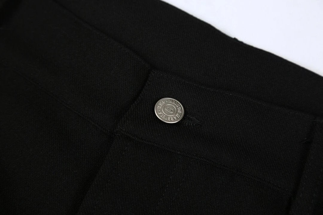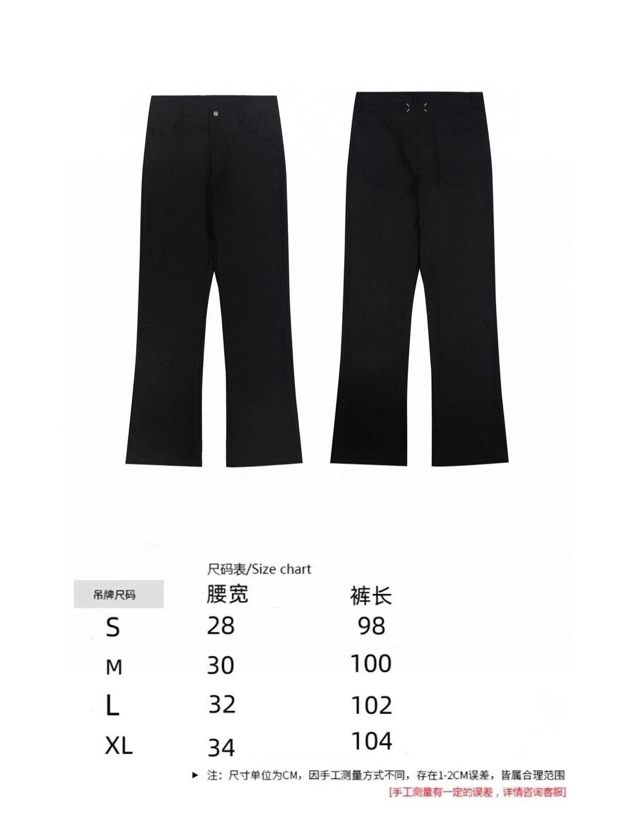 Margiela Logo Flared Wide-Leg Slimming Unisex Suit Pants Casual Pants Color: Black Size:S M L XL Number: 2428 Original version match 70% polyester + 30% pure cotton fabric, fully elastic, unique cut for a loose and slimming look! Hand-sewn Classic Four-corner Badge Original Mold Customization Logo Engraving Hardware Buttons Full of Details! Latest Original Custom Full Set Accessories Tags Packaging Bags Stickers Washing Labels All Included Pre-Purchase Instructions