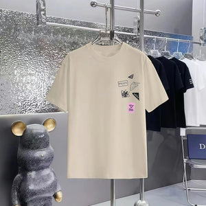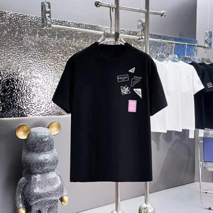 PRADA T-shirt Square Pattern Print on the Chest logo round Neck Short Sleeve25ss New Pure Cotton Unisex Style T Casual T-Shirt Base Layer Shirt OS Loose Fit Half Sleeve Top Plus Size