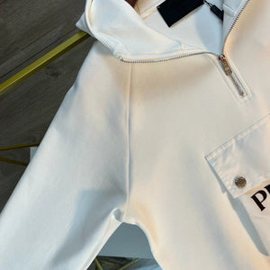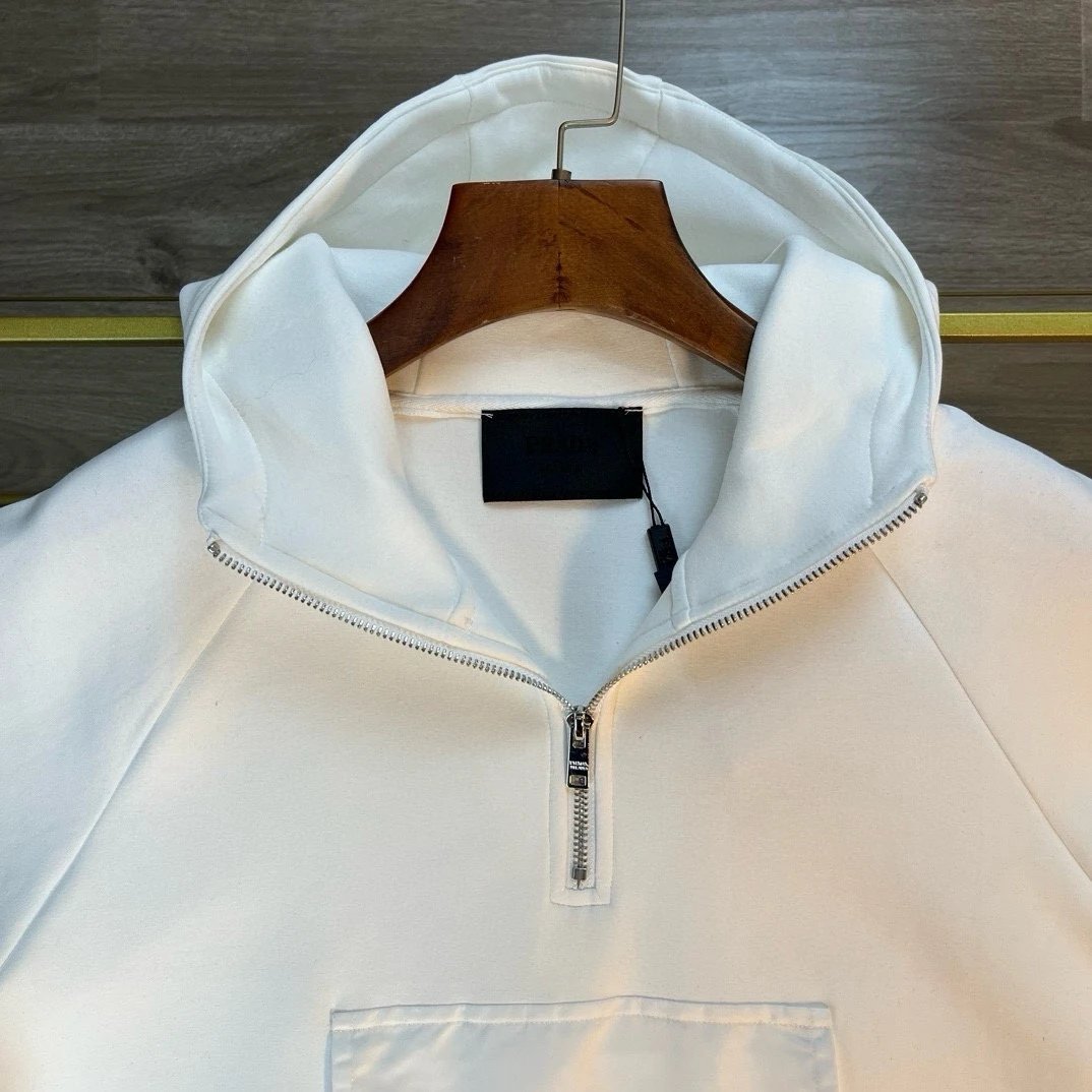 PRADA SS24 New Pocket Letter Logo Zipper Hoodie Sweatshirt Unisex Sports Casual Loose Fit Versatile