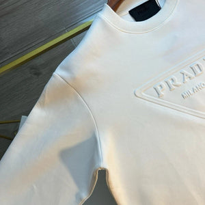 PRADA SS24 New Triangle Embossed Round Neck Sweatshirt Long Sleeve Base Shirt Jacket Top Fashion Unisex Sports Casual Loose Versatile Autumn Winter New Arrival