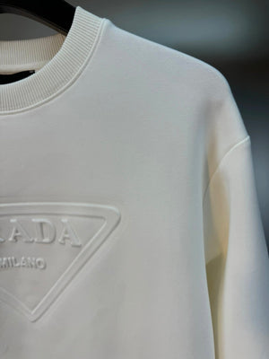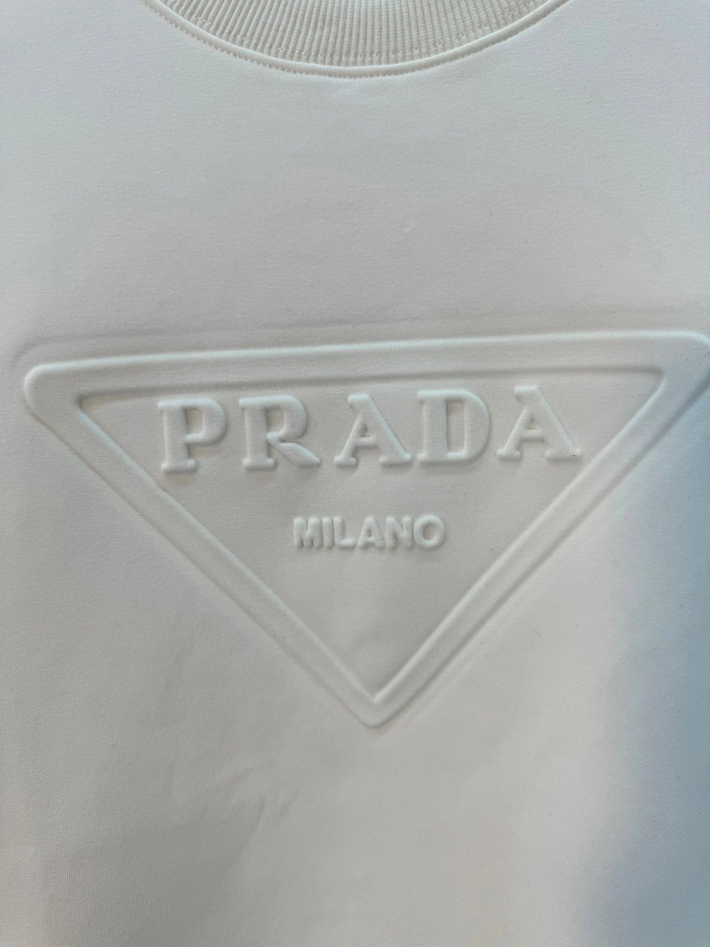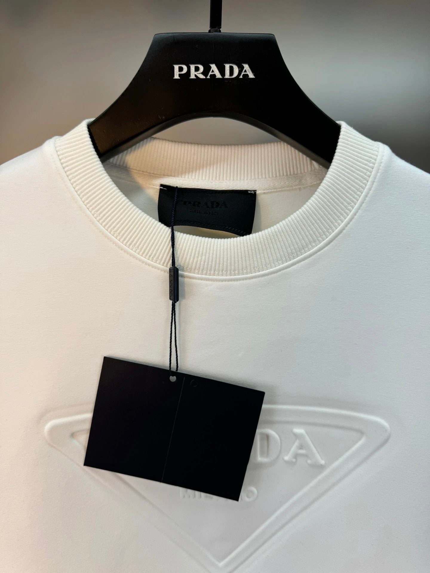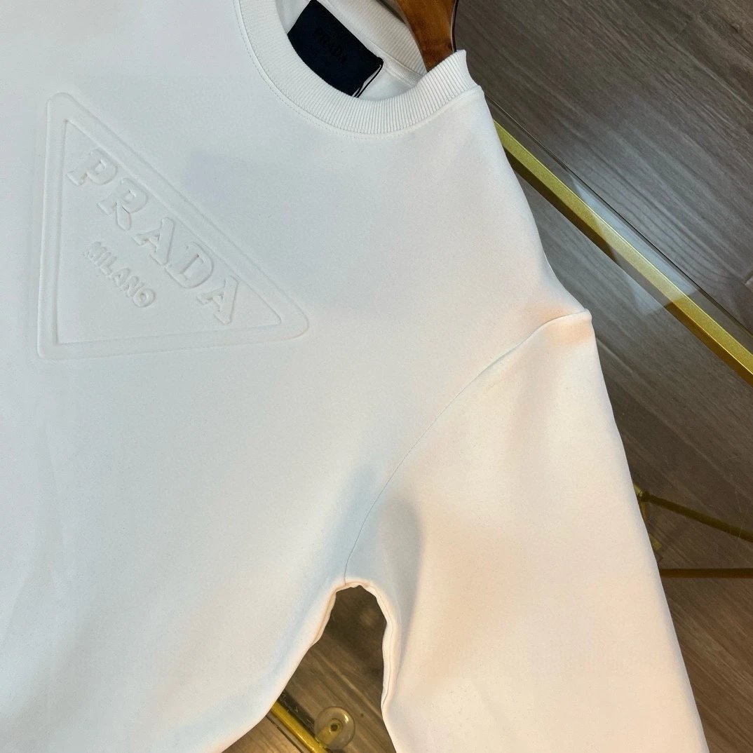 PRADA Hoodie SS24New Style Front Triangle 3D Embossed Crewneck Sweatshirt Long Sleeve Base Shirt Outerwear Trendy Unisex Sports Casual Loose Fit Versatile Autumn Winter New Arrival