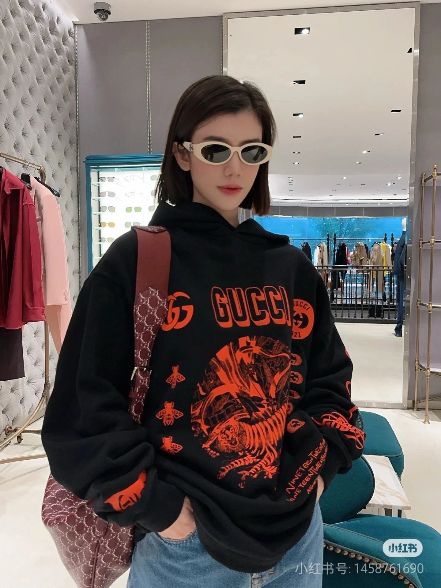 Gucci Hoodie Star Style Multi-Detail Micro-Embroidered Hoodie Sweatshirt Jacket Unisex Sports Casual OS Loose fit versatile style