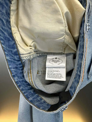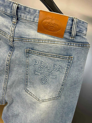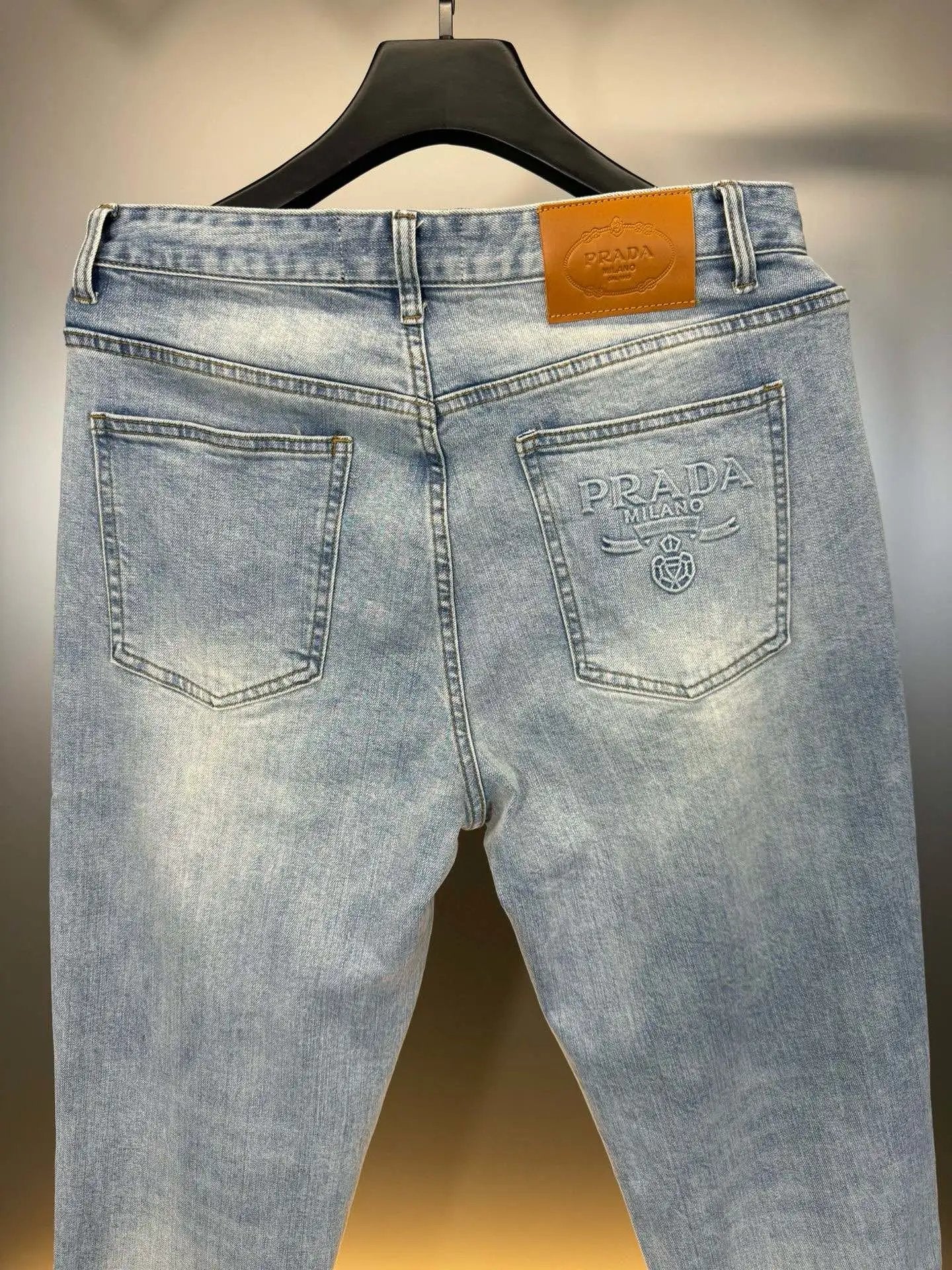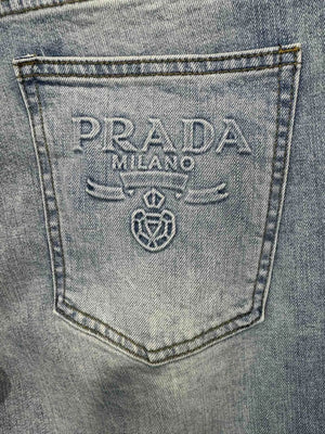 PRADA Prada 3D Letter Logo Washed Blue Jeans Autumn Winter New Unisex Straight Long Pants Loose Casual Wide Leg High Waist