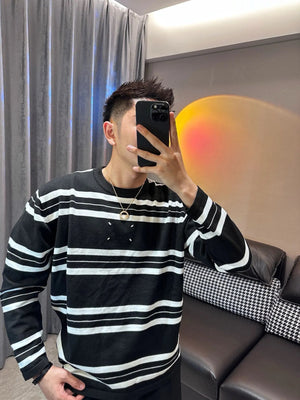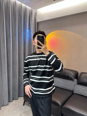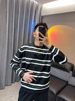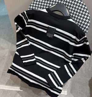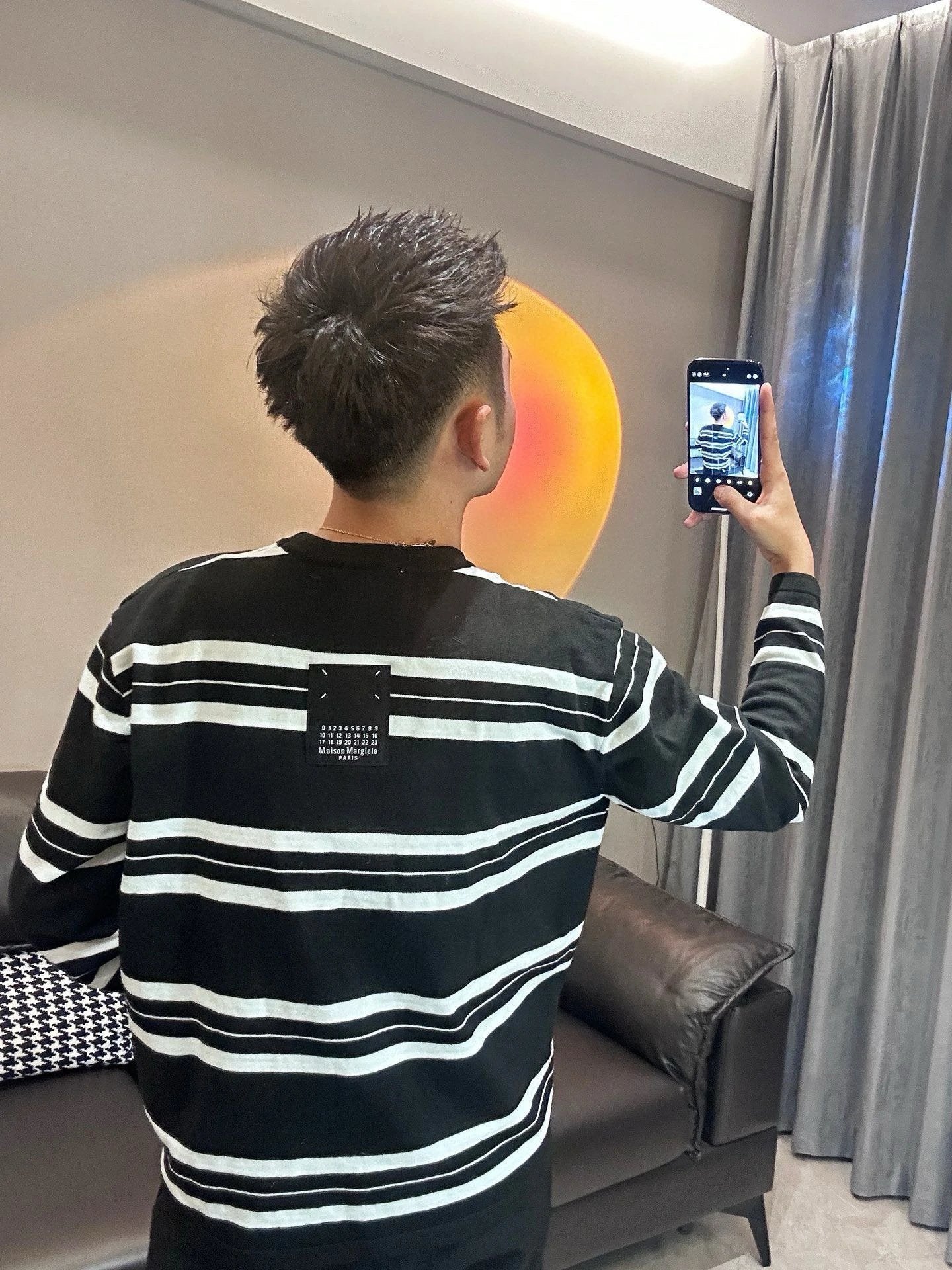 Top Version Mar*iela Margiela Striped Crew Neck Sweater Long Sleeve Pullover Thickened Lazy Style OS Fit Loose Coat Unisex Top Versatile Casual