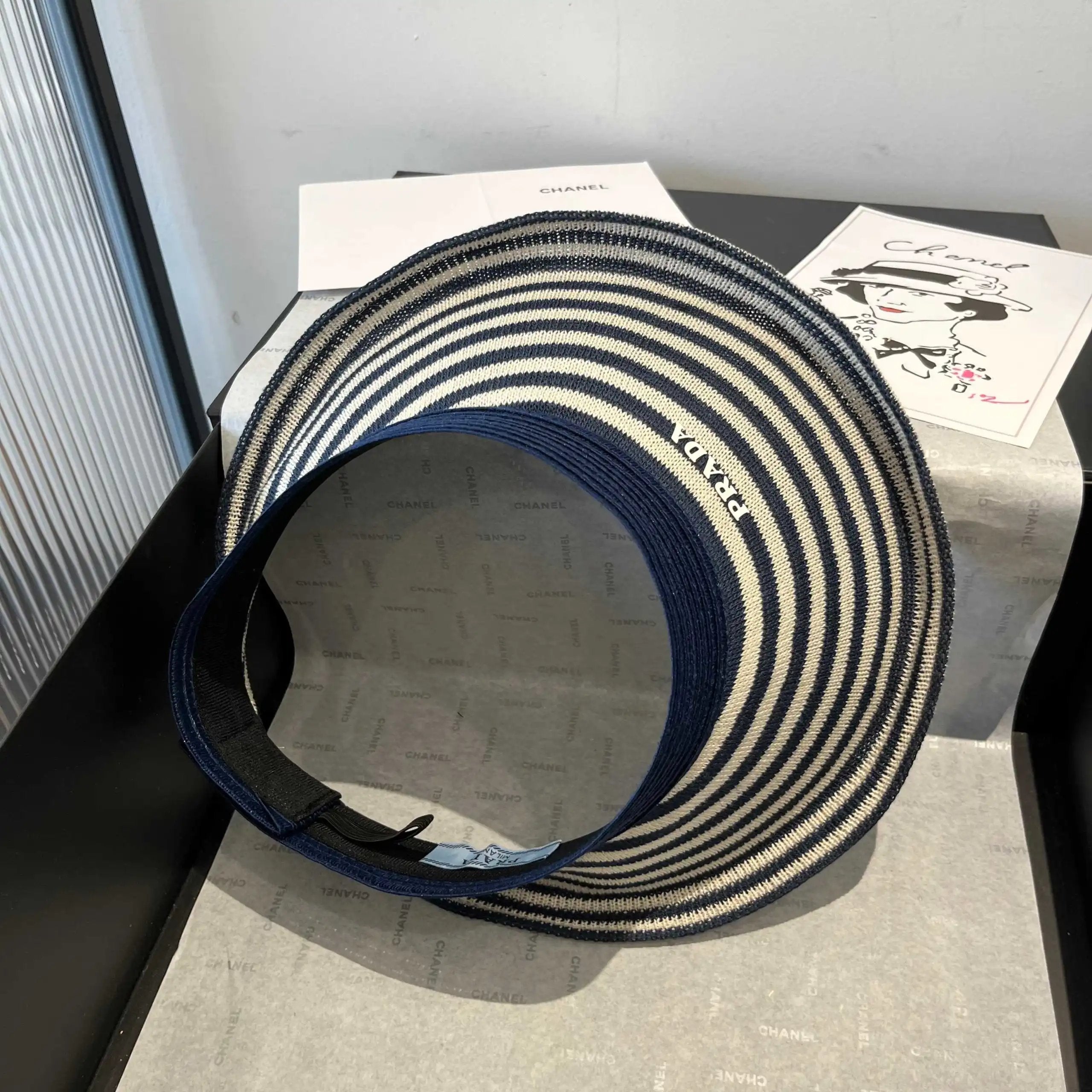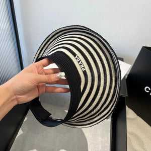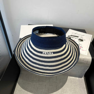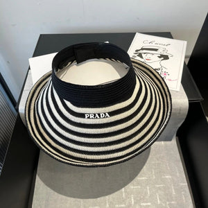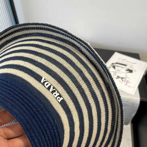 PRADA Hat Striped Knitwear logo Fisherman Hat Casual Sun Protection UV Protection Plain Face Covering Sun Hat Outdoor Versatile Flat Top Bucket Hat