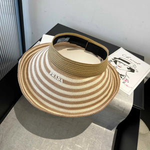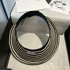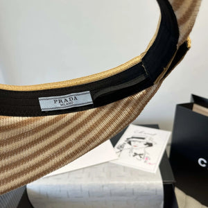 Top Version Prada Striped Knit Logo Baseball Cap Sunshade Sun Protection Duckbill Cap P House Slim Face Curved Brim Versatile Large Head Circumference Sports Hat Unisex Couple Style
