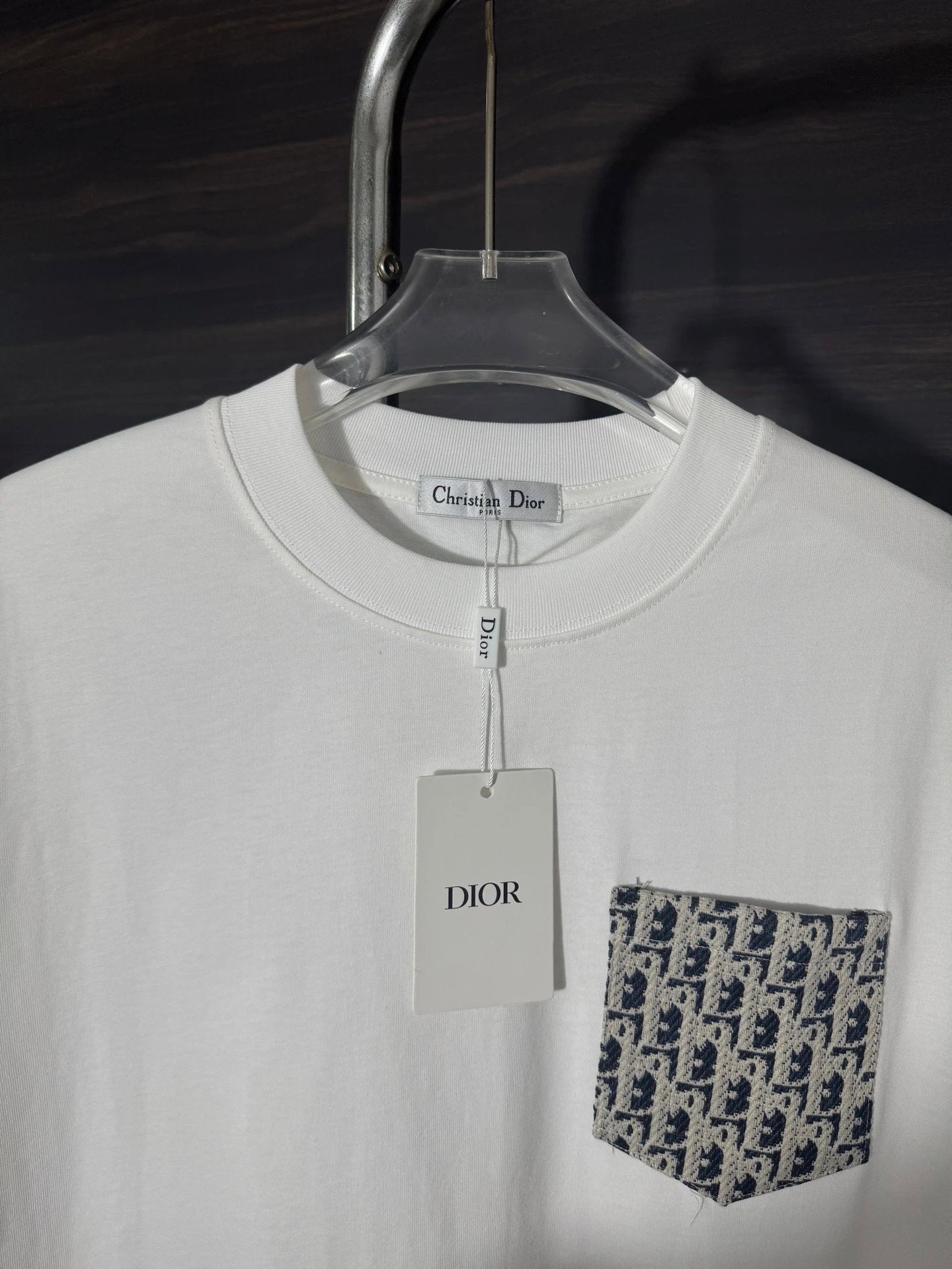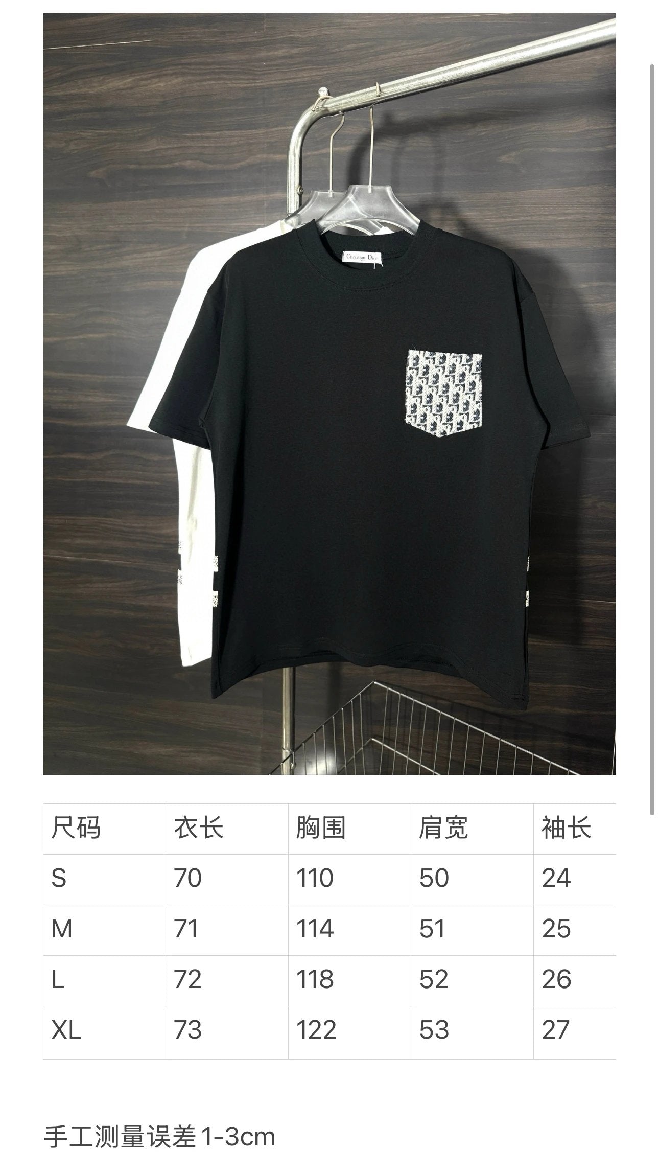 The fabric is made of 280g double-ply pure cotton fabric with a comfortable and soft feel. The top is breathable and comfortable to wear. The neckline features ribbing from the same batch and color, not tight or deformed. The chest pocket is sewn from Dior's original denim fabric, highlighting the garment's features. The hem features Dior letter print stitching, factory workmanship with original labels and all three labels complete. Loose fit for an OS style; rest assured when purchasing. Maximum wearable size is 100kg cm.