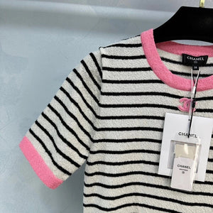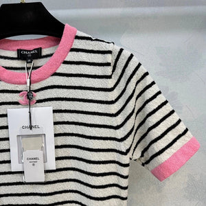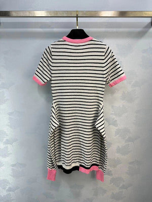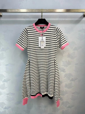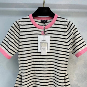 Chanel dress Summer New Style Knitted Dress Classic Striped Elements Highlight High-End Sense Is Fashionable Waist Comes with Belt Design Special Is Suitable for Summer Matching 1Color3Code sml