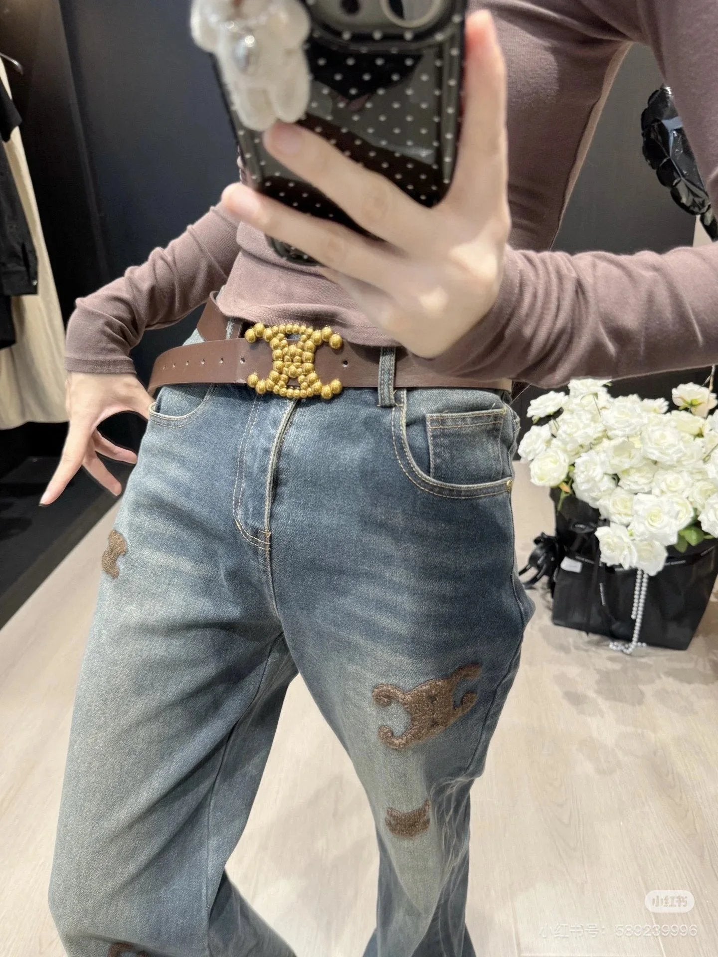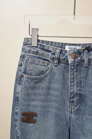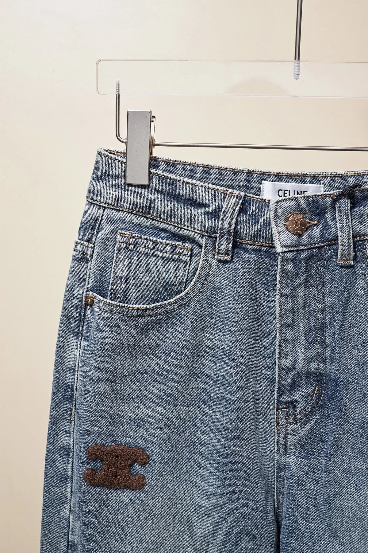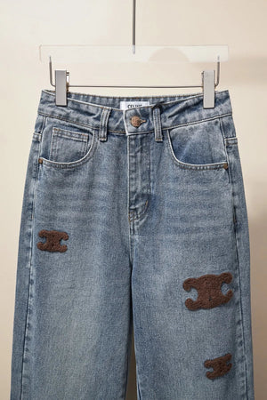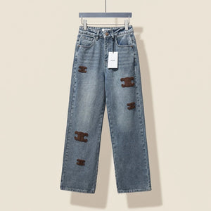 Celine Jeans Three-Dimensional Embroidery logo Women's Straight Leg Jeans Versatile Casual