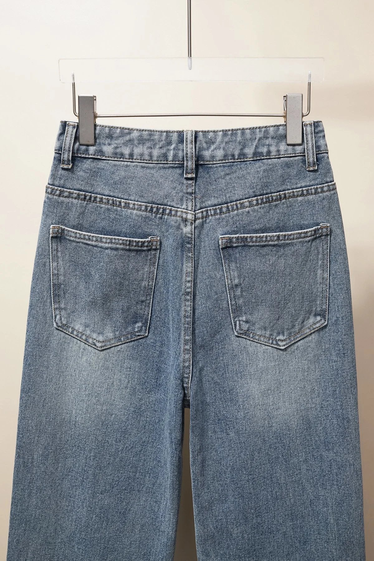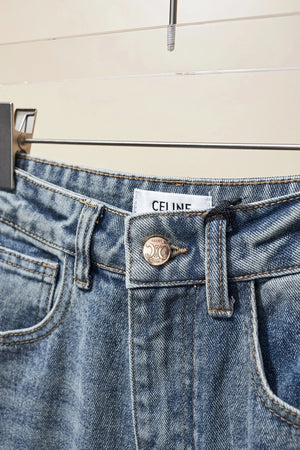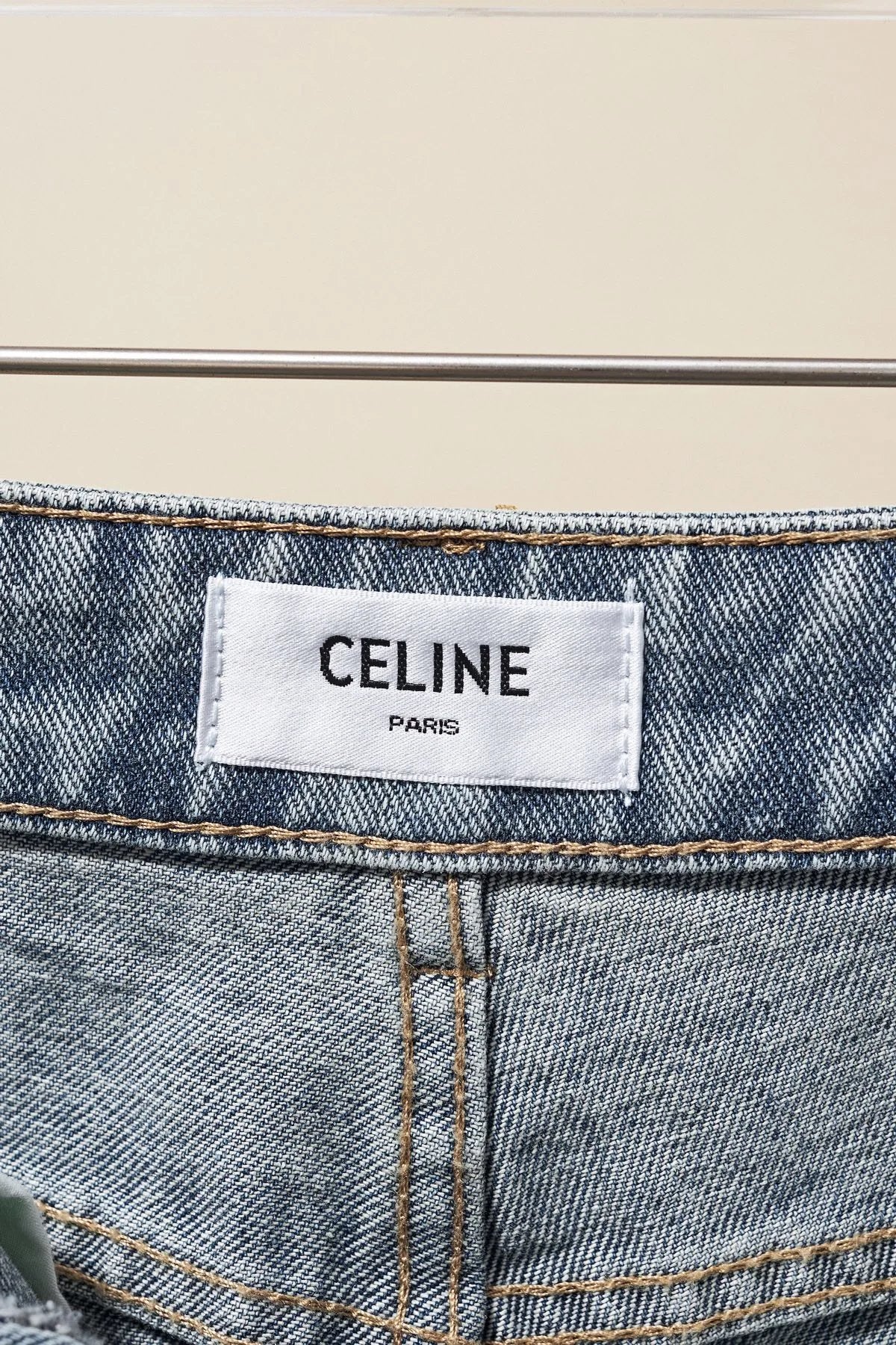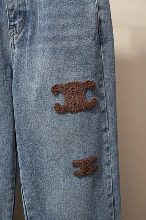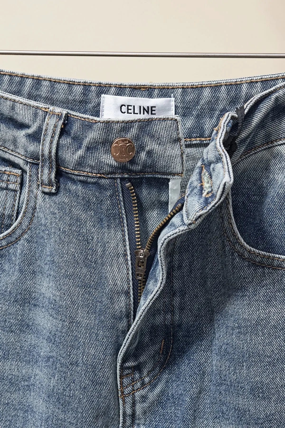 Celine Jeans Three-Dimensional Embroidery logo Women's Straight Leg Jeans Versatile Casual