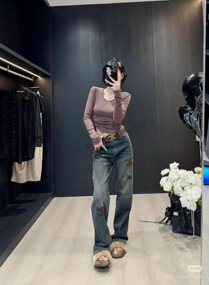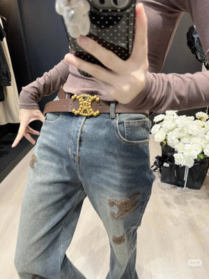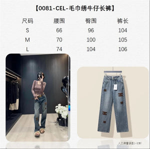 Top Version CE Sailin 3D Embroidered Logo Denim Straight-Leg Pants Women's Versatile Casual Pre-Purchase Instructions