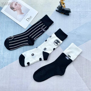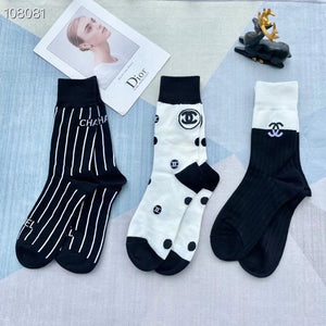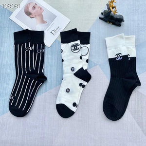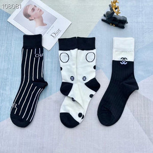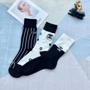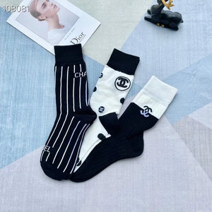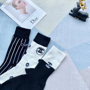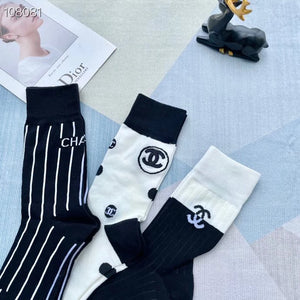 Chanel Sock【Three Pairs Per Box】High Version Same Product on Official Website Popular Heavy Industry Decoration Tube Socks High Version~