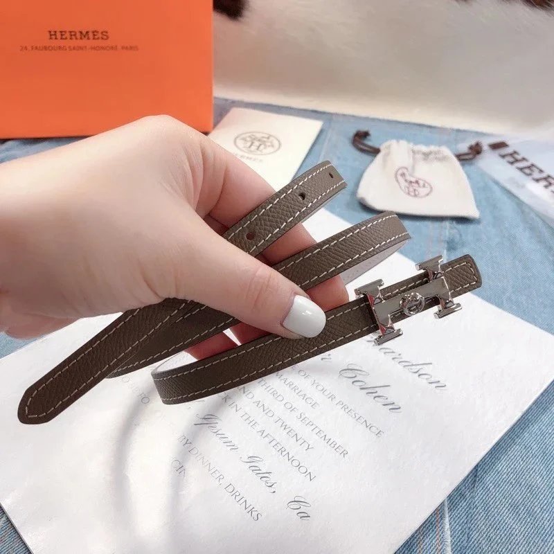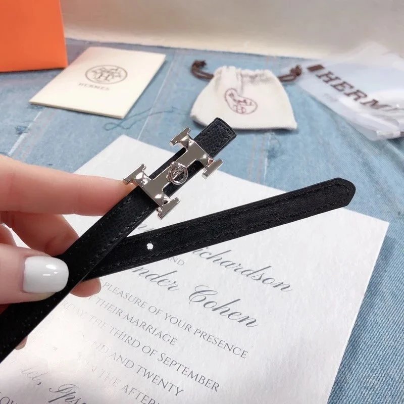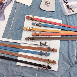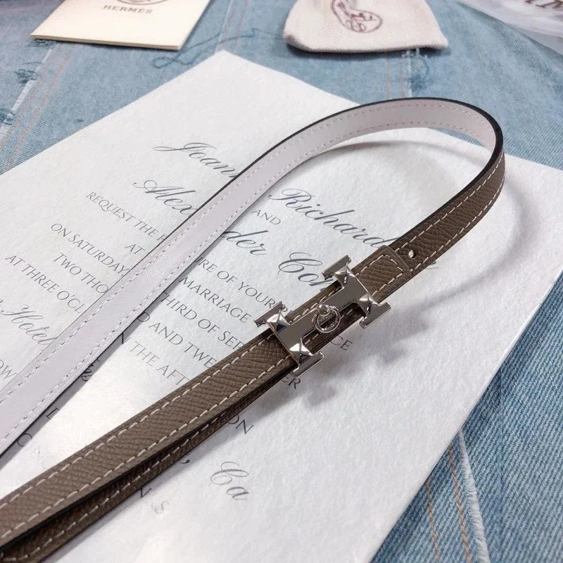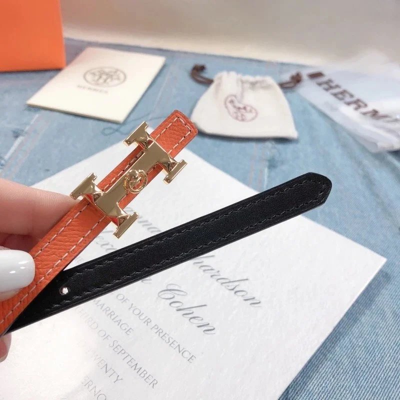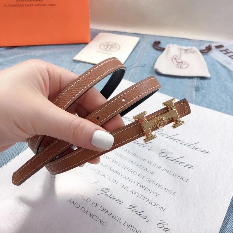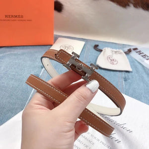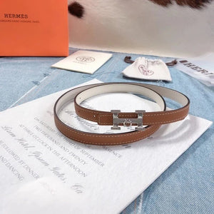 Original Single Hermes Hermes 1.3cm Wide Women's Belt Genuine Leather Double-Sided Belt Italy Imported First Layer Cowhide Leather Pure Original Leather Pure Steel Buckle H Home Pant Belt Instructions before Purchase