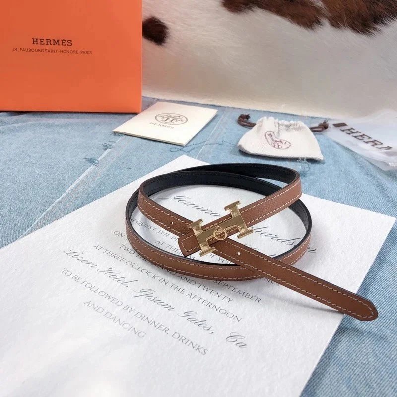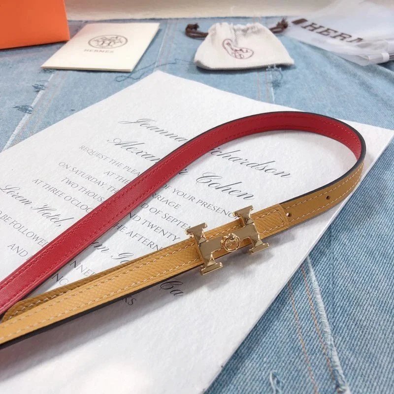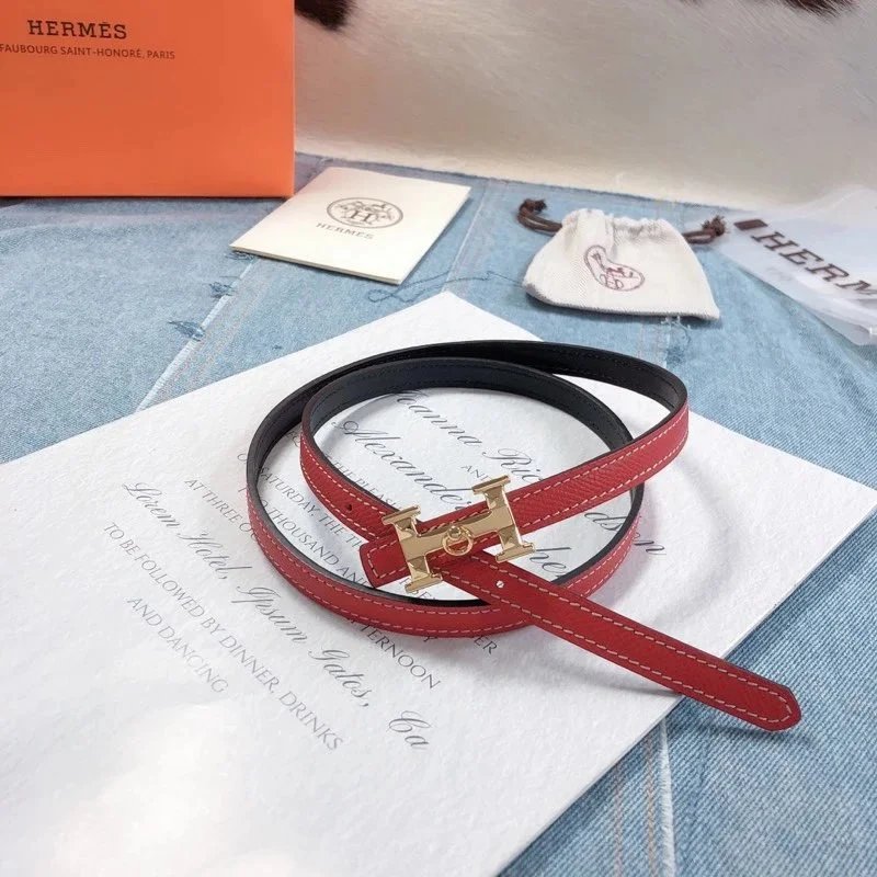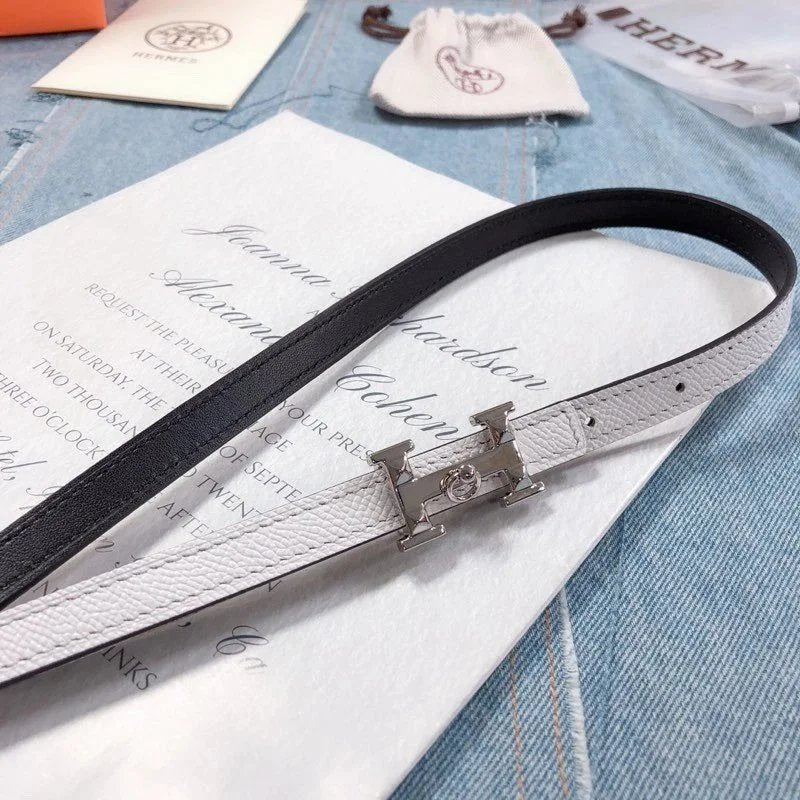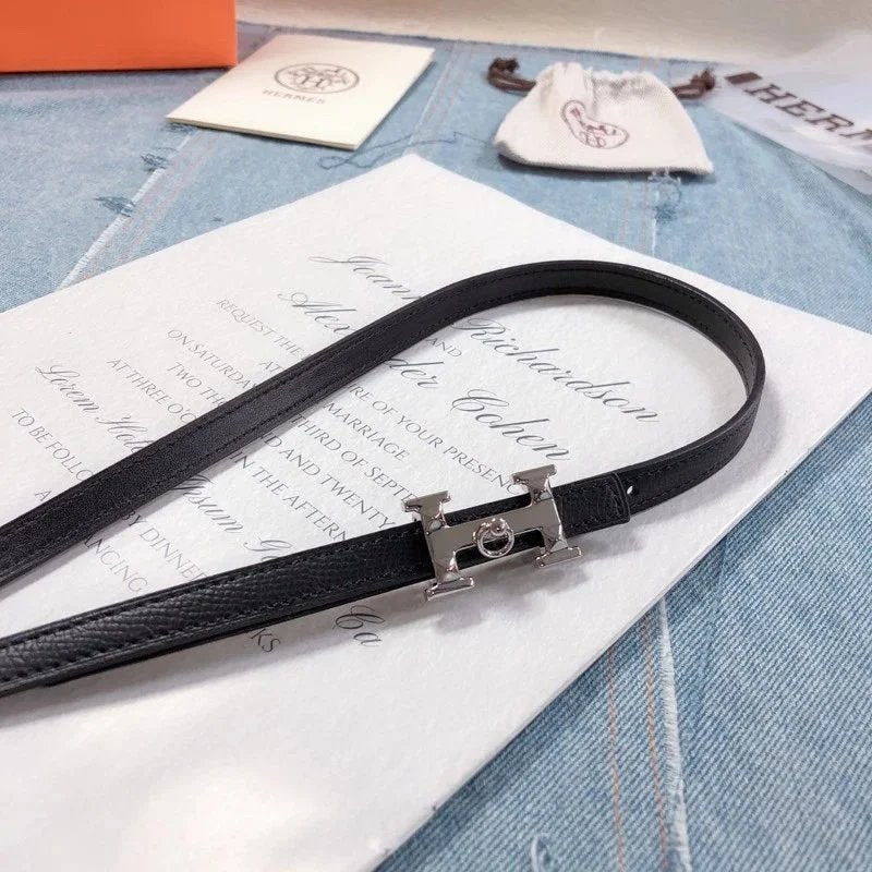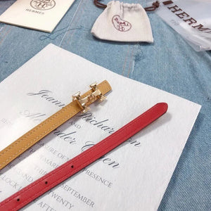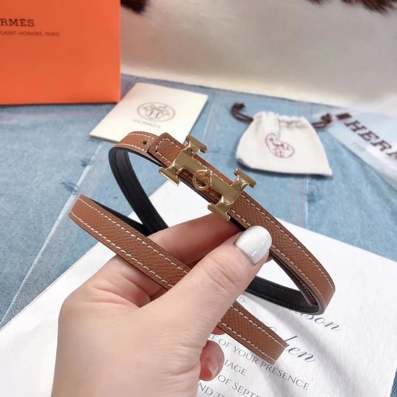 Original Single Hermes Hermes 1.3cm Wide Women's Belt Genuine Leather Double-Sided Belt Italy Imported First Layer Cowhide Leather Pure Original Leather Pure Steel Buckle H Home Pant Belt Instructions before Purchase