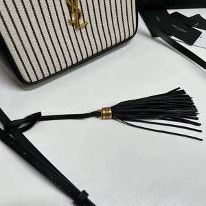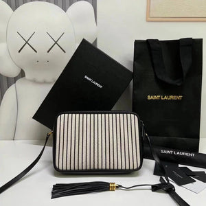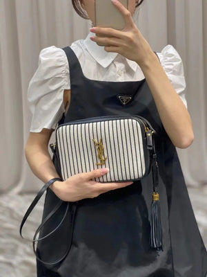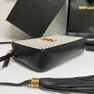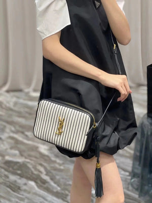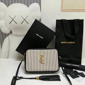 YSL Women's Bag Top version 2022New lou Striped Camera Bag Crossbody Bag Shoulder Bag Women's Bag Black and White Color Matching Interpretation of Large Area Striped Pattern,Decorated with Black Edges、Retro Tone Hardware,Super Lightweight Weight,Amazing C