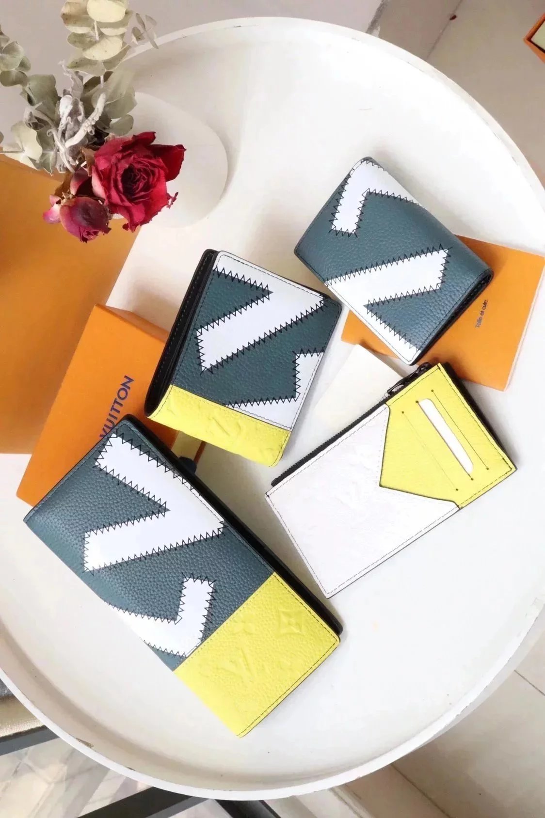 Louis Vuitton LV Wallets/Clutches Top version 2022New Patchwork Plain Leather Wallet Men's the Suit Wallet Two Fold Two Fold Long Zip Wallet Presbyopic Fashion Wallet Clutch Men's Short Wallet Card Holder Coin Purse