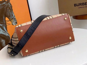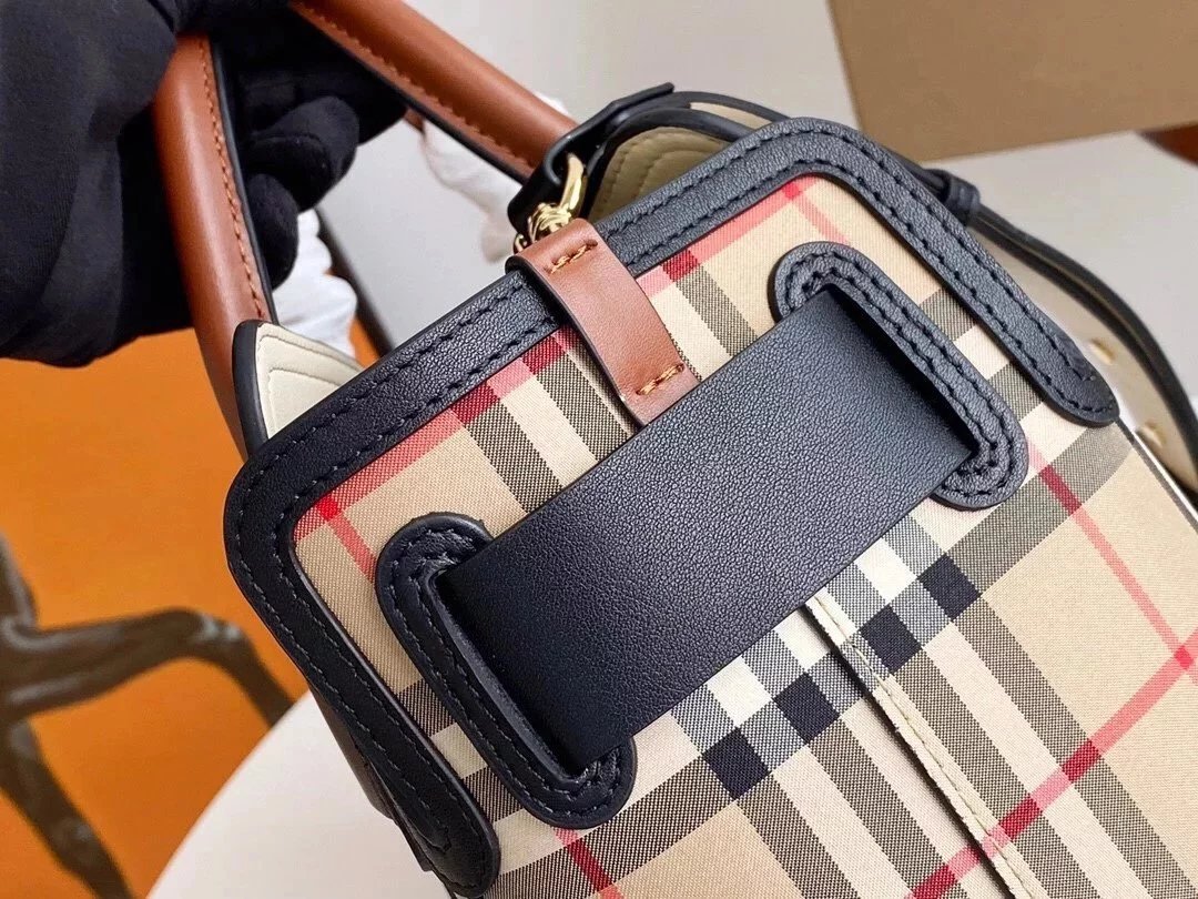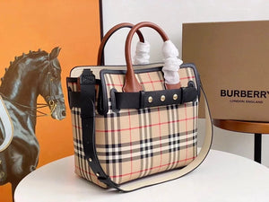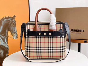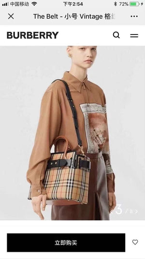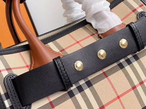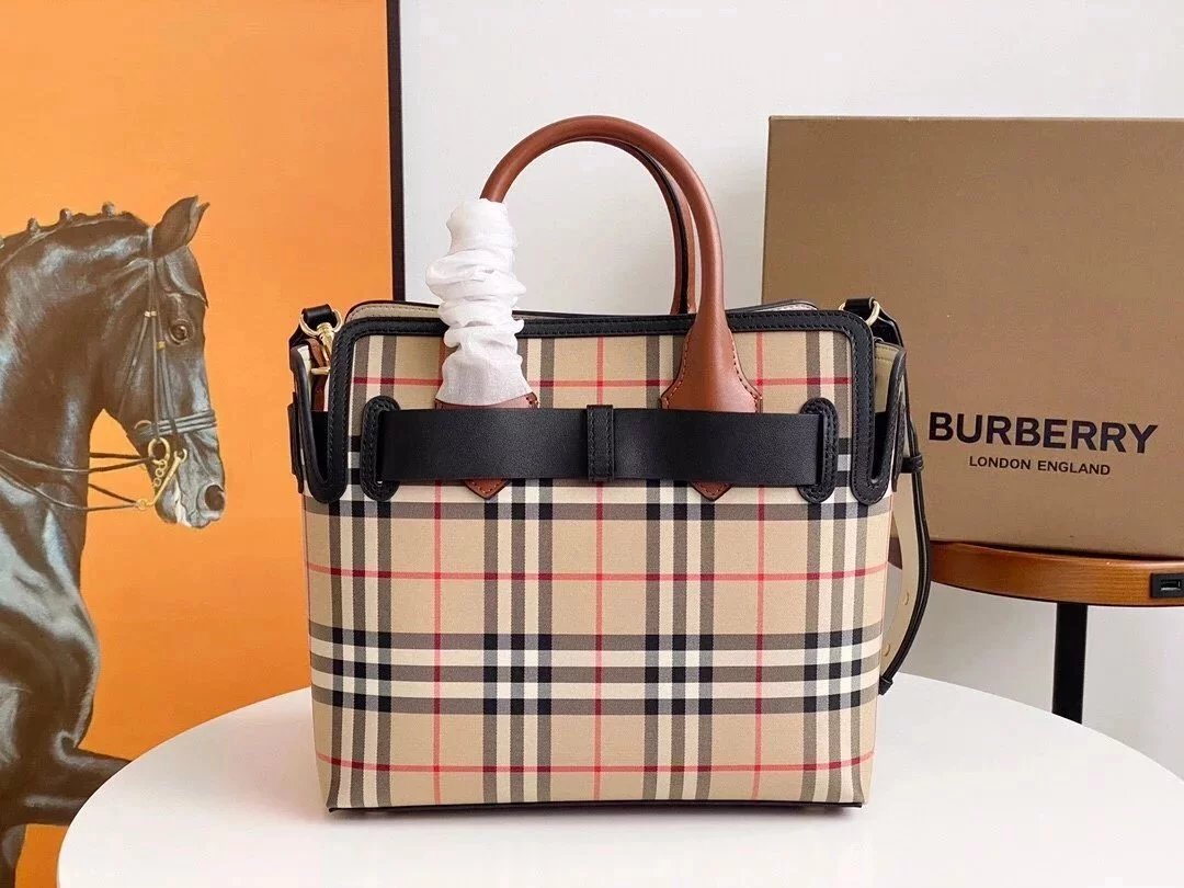 (Original Quality) Burberry Model: 7901 Three-Grain Decorative Rivets Tote Bag "the Belt Mini Top Handbag", Selected Vintage Retro Plaid Cutting Piece inside and outside, and Made of Three Colors of Soft Leather, streamers Inspired by the Brand's Iconic Trench Coat Size: 36xx23cm Pre-Purchase Instructions