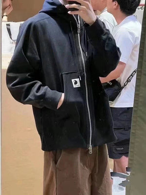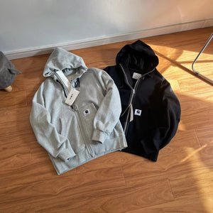 Carhartt Jackets Top Version Autumn and Winter New Zipper Hooded Stitching and Brushed Sweater Split Men's and Women's Tops Coat