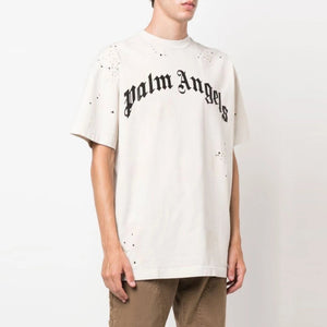 **Version Palm Palm Angels Splash Ink Hole Distressed Foam Angels Printed Loose Short Sleeve T-shirt Men and Women Same Style Tee before Purchase