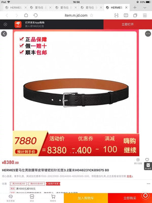 Hermes Belt Top version Belt Counter Synchronization Togo Leather3.5Men's Leather Belt First Layer Cowhide Pants Belt