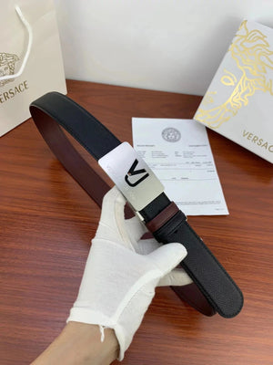 VERSACE Belt Top version Belt Men's First Layer Cowhide Smooth Buckle Business Casual Belt