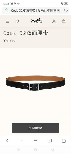 Hermes Belt Top version Belt Men's Leather Synchronous Counter3.2Fashion Double-Sided Casual Belt Men's and Women's Belt