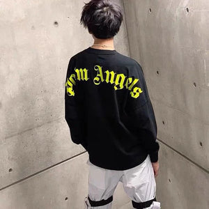 Palm Angels Hoodie Top Version Brown Blue Letter Print Loose Pullover Long-Sleeved Shirt T T-shirt Male and Female Trendy Brand Hip Hop High Street