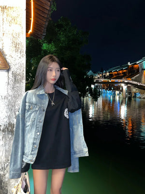 **Version Palm Angels Palm Angels 2022ss Classic Back Letter Printing Washed Denim Jacket, Description before Purchasing the Same Style for Men and Women
