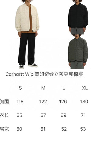 **Version Kahart Carhartt WIP Classic Label C Logo Pattern Full Printed Quilted Stand Collar Coat Cotton-Padded Jacket Cotton-Padded Clothes before Purchase Instructions