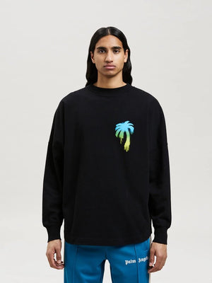 Palm Angels Hoodie Top Version Classic Men's Black Cotton Tree Spray Paint Printed Loose Long Sleeves round Neck T T-shirt