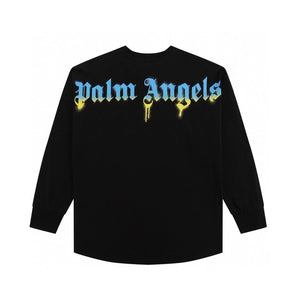 **Version Palm Angels Classic Men's Black Cotton Palm Tree Spray Paint Printed Loose Long Sleeves round Neck T-shirt before Purchase Instructions