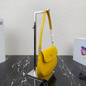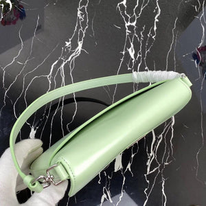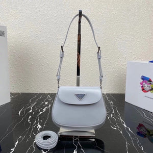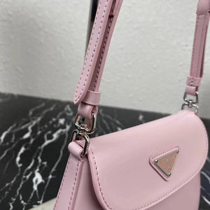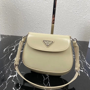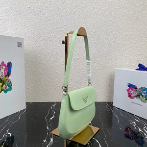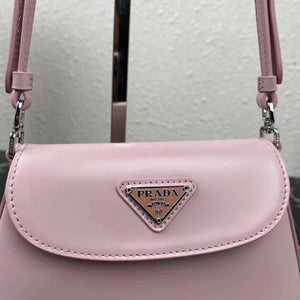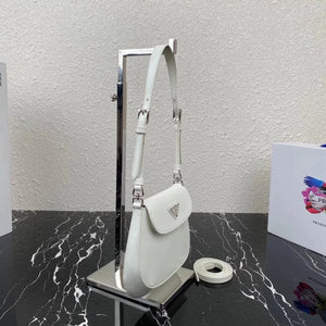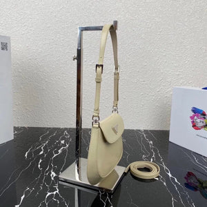 [**Original Order] P's New (Mini) 1bh188 Cleo Series Handbags Reinterpret the Brand's Iconic Collection Design, Witnessing the Integration of Classicism and Futurism. This Curved Mini Shoulder Bag Has Simple and Stylish Lines, and the Unique Oblique Configuration at the Bottom and Side Gives the Bag a Beautiful Style. Handle with Extension Strap, Can Be Worn by Hand Or Crossbody, with 3 One Card Insertion Position, Light and Stylish, Hurry up and Buy It Size: Length 17x Height 14.5x Bottom 7cm!