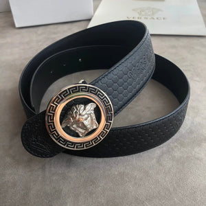 VERSACE Belt Top version Counter Original Brand New Full Set3.8Belt Belt Fashion Trendy Genuine Leather Business Casual Men's and Women's Belt Cowhide Pant Belt