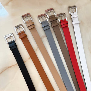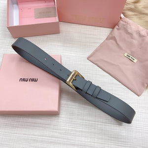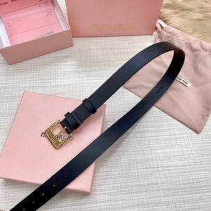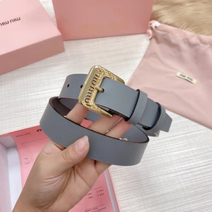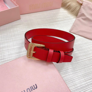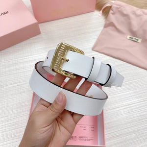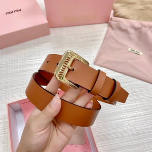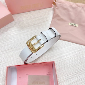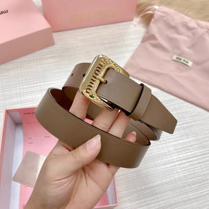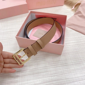Miu Miu Belt Top version Counter Quality New Women's Belt Minimalist Style Belt CityCalf Calfskin Material.Metal Square Pin Buckle.Fashionable Versatile Width3.0Belt Women's Belt Women