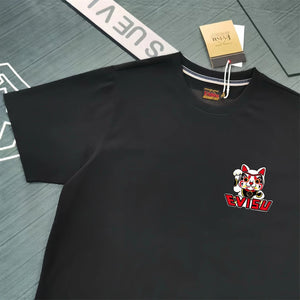 Evisu T-shirt Top Version Counter Same Style Cotton Short Sleeve T T-shirt Men's and Women's Loose Summer Base Casual Half Sleeve