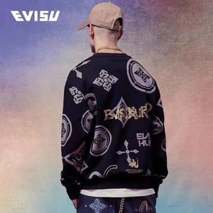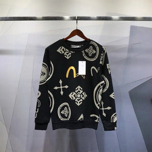 Evisu Hoodie Top Version Counter Same Style Crew Neck Pullover Sweatshirt Top Men and Women Same Style Autumn and Winter Leisure