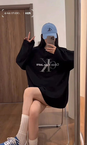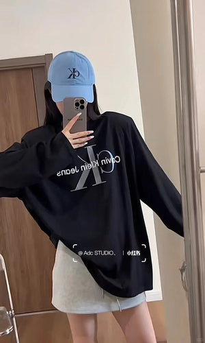 Calvin Klein Hoodie Top Version Counter Same Style Pure Cotton Summer Men's and Women's Same Fashion Loose All-Matching2024New Long Sleeve T T-shirt