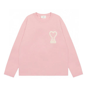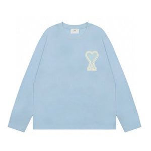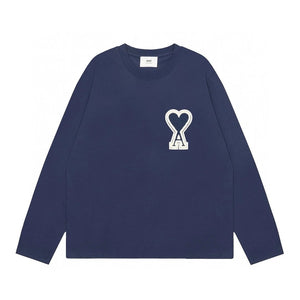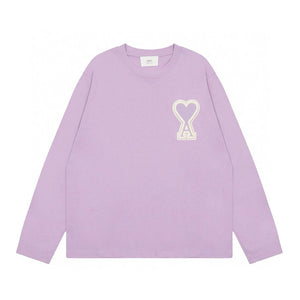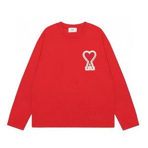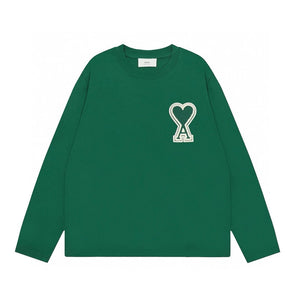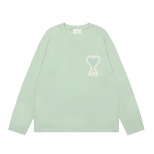 Ami Hoodie Top Version Counter Same Style Pure Cotton Summer Men's and Women's Same Fashion Loose All-Matching2024New Long Sleeve T T-shirt