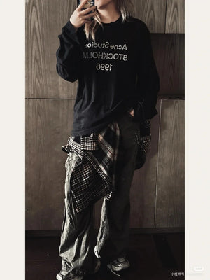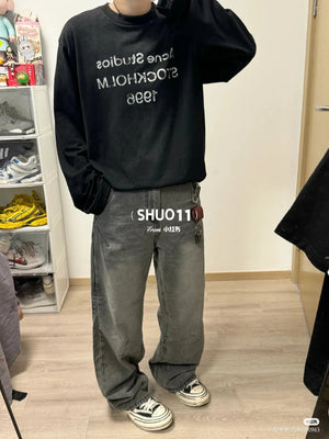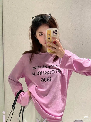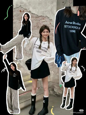 **Version Acne Counter Same Pure Cotton Summer Men's and Women's Same Fashionable Loose All-Match 2024 New Long-Sleeved T-shirt before Purchase Instructions