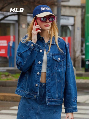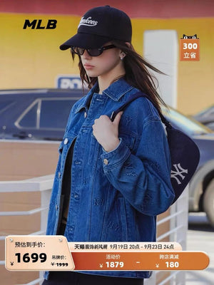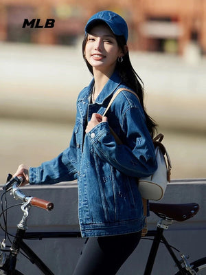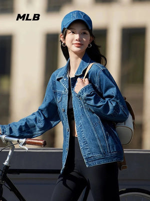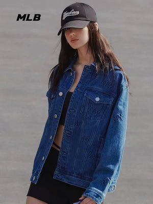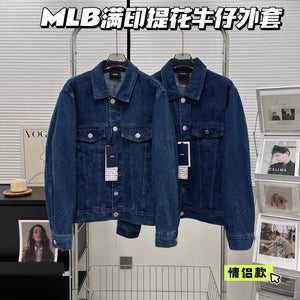 MLB Jackets Top Version Couple Denim Coat Men's and Women's Embroidered Retro Presbyopic Sports Casual Jacket