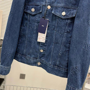 24 Latest MLB/NY Jacquard Full Printed Denim Coat for Couples