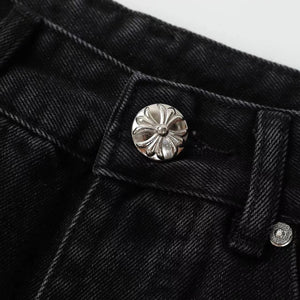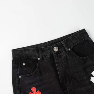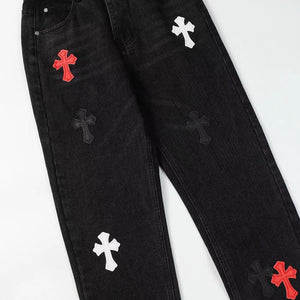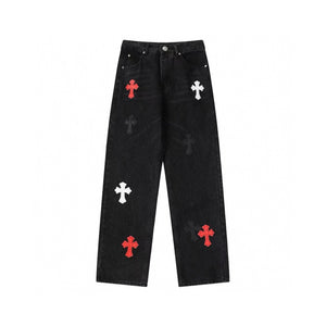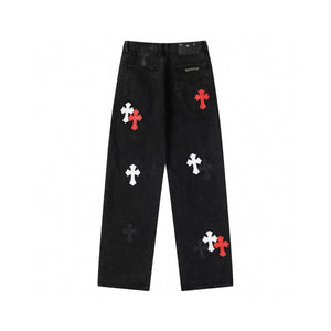 Chrome Hearts Jeans Top Version Cross Leather Tag Version Worn Jeans Casual Men and Women Slightly Loose All-Matching Contraction Trouser