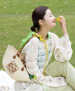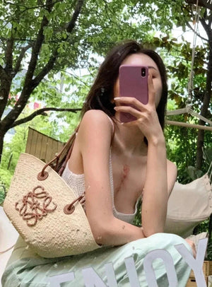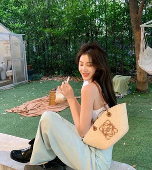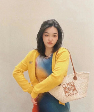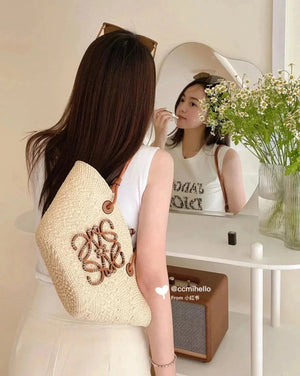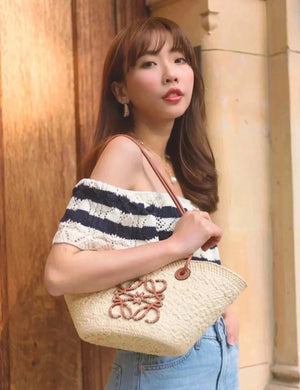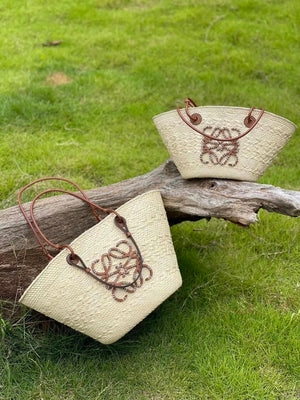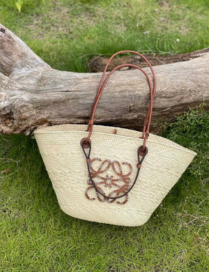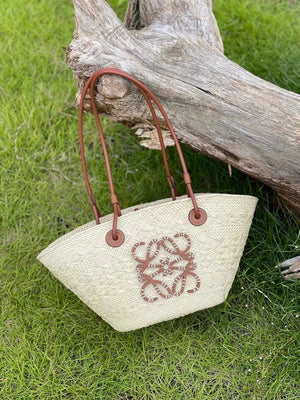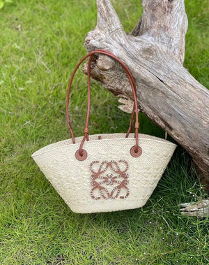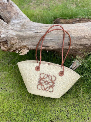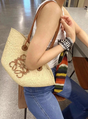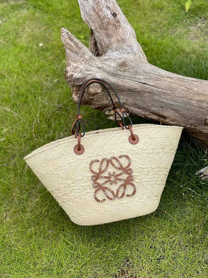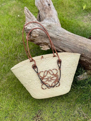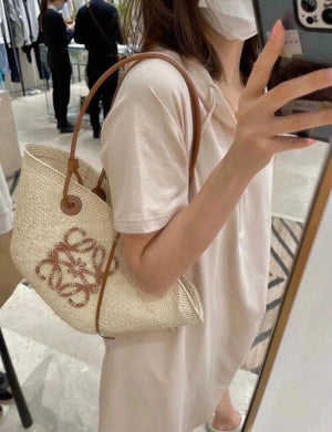 LOEWE Women's Bag Top version Customized Cabinet Quality loe Latest Straw“Dahu Luo”Paula‘sIbiza Series Basket Medium Imported Raffia Hand-Woven Vegetable Basket Bag Woven Bag Shopping Bag Shopping Bag Shopping Basket Bag Straw Bag