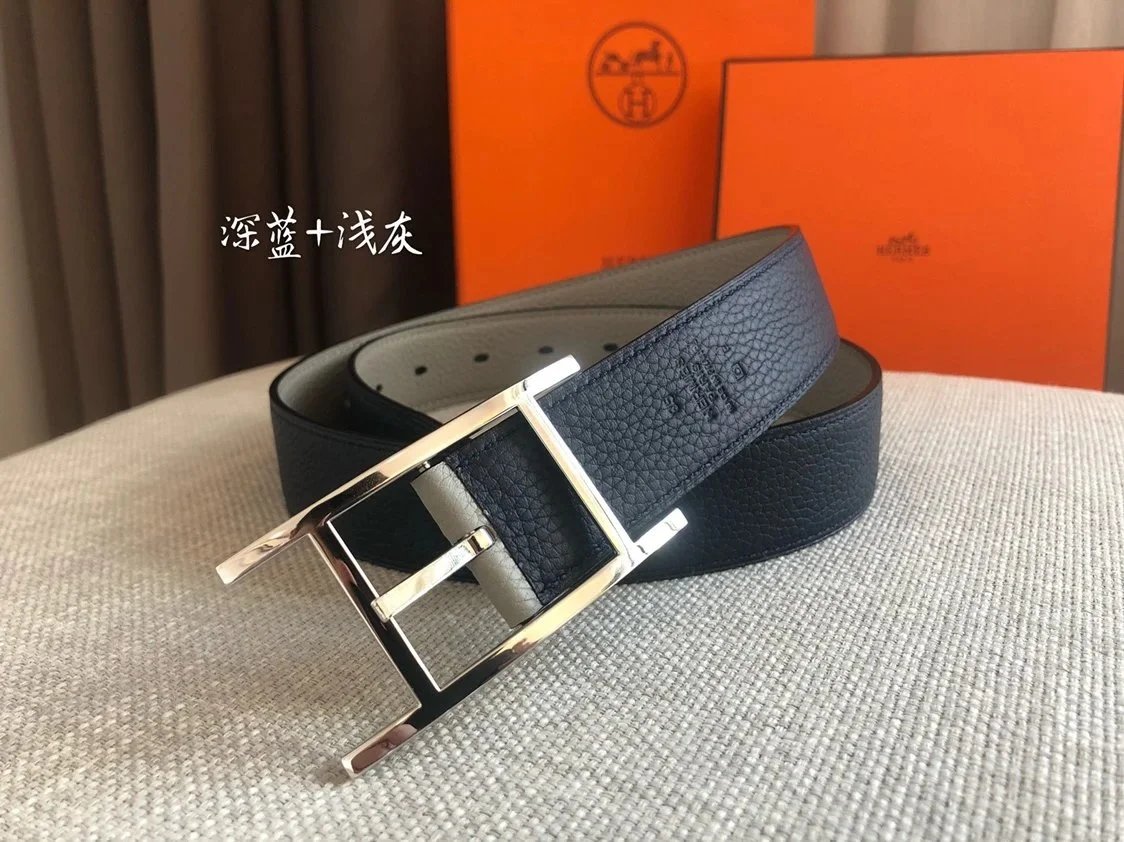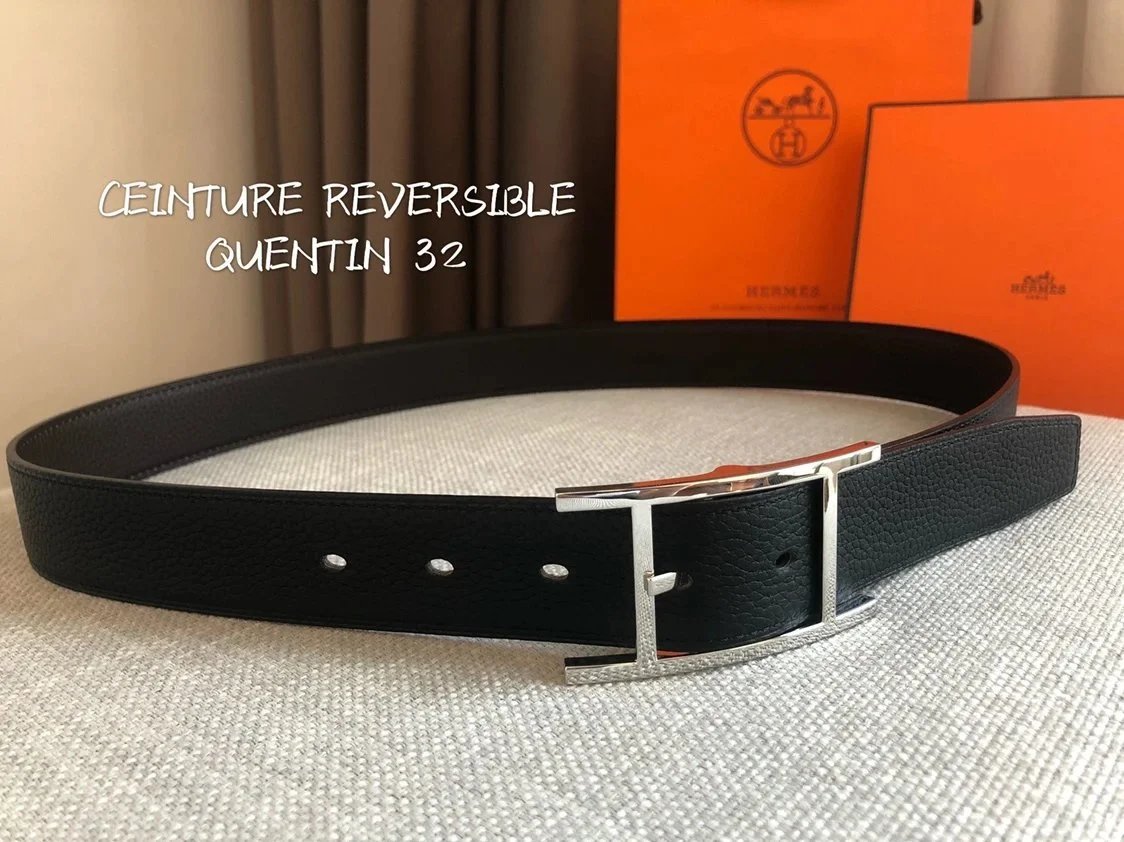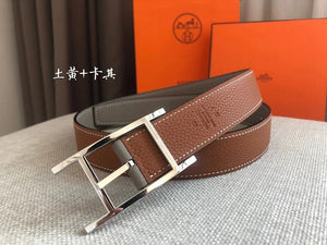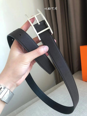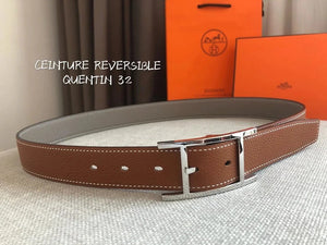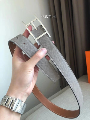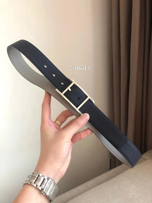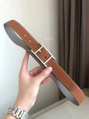 Hermes Belt Top version Double-Sided Imported First Layer Cow Leather Belt Double-Sided Available Genuine Leather for Men and Women Belt Business Casual All-Match Pant Belt3.2Centimeter Wide