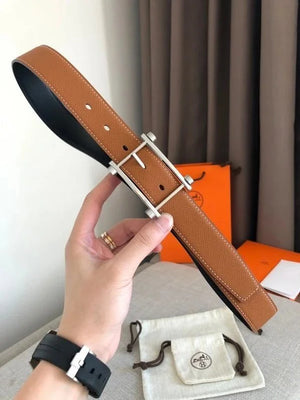 Hermes Belt Top version Double-Sided Imported First Layer Cowhide Double-Sided Belt Leather Unisex Belt Business Casual All-Match Pant Belt3.2Centimeter Wide