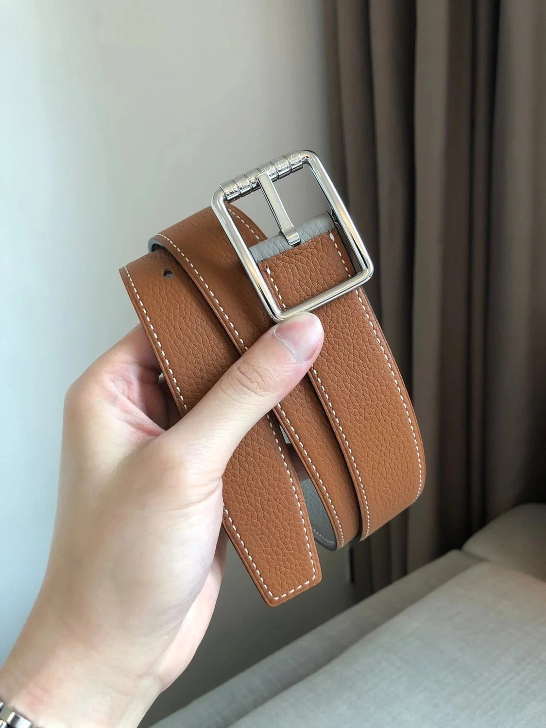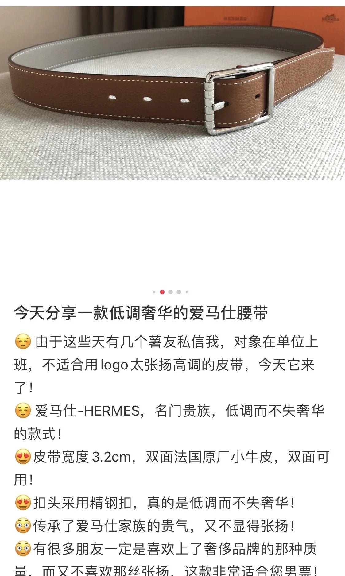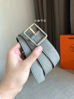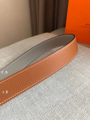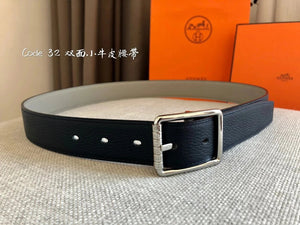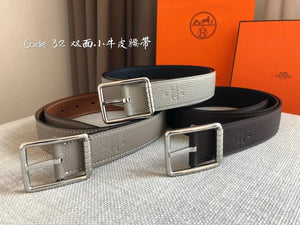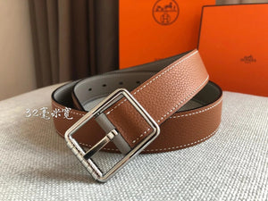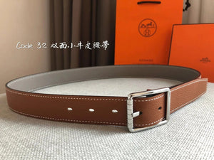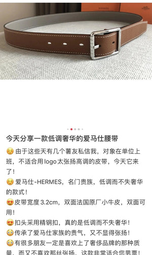 Hermes Belt Top version Double-Sided Imported First Layer Leather Belt Double-Sided Available Genuine Leather for Men and Women Belt Business Casual All-Match Pant Belt3.2Centimeter Wide