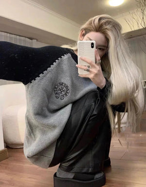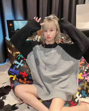 Chrome Hearts Sweater Top Version Early Autumn New Color Matching Horseshoe Embroidery Sweater Long Sleeve