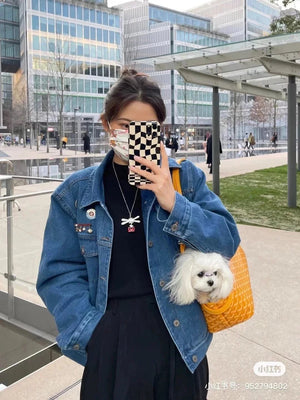 [Gojia] The New Chien Gris & Pocket Pet Bag Inherits the Aesthetic Design and Features of Our Classic Saint Louis Bag. It Is Used to Safely Carry Small Dogs (2000G to 3,000G). The Detachable and Adjustable Collar Is Inspired by Our Edmond Collar to Ensure the Stability of Dogs during Transportation. The Base of the Bag Is Relatively Hard, So the Puppy Can Sleep in It. The Most Unique and Customized Letter Name for Your Pet with Pocket Ornaments Bone Bag! Removable and Cleanable Felt Bottom, Adjustable Length Flat Buckle! Size: 27X15X33.5cm Instructions before Purchase