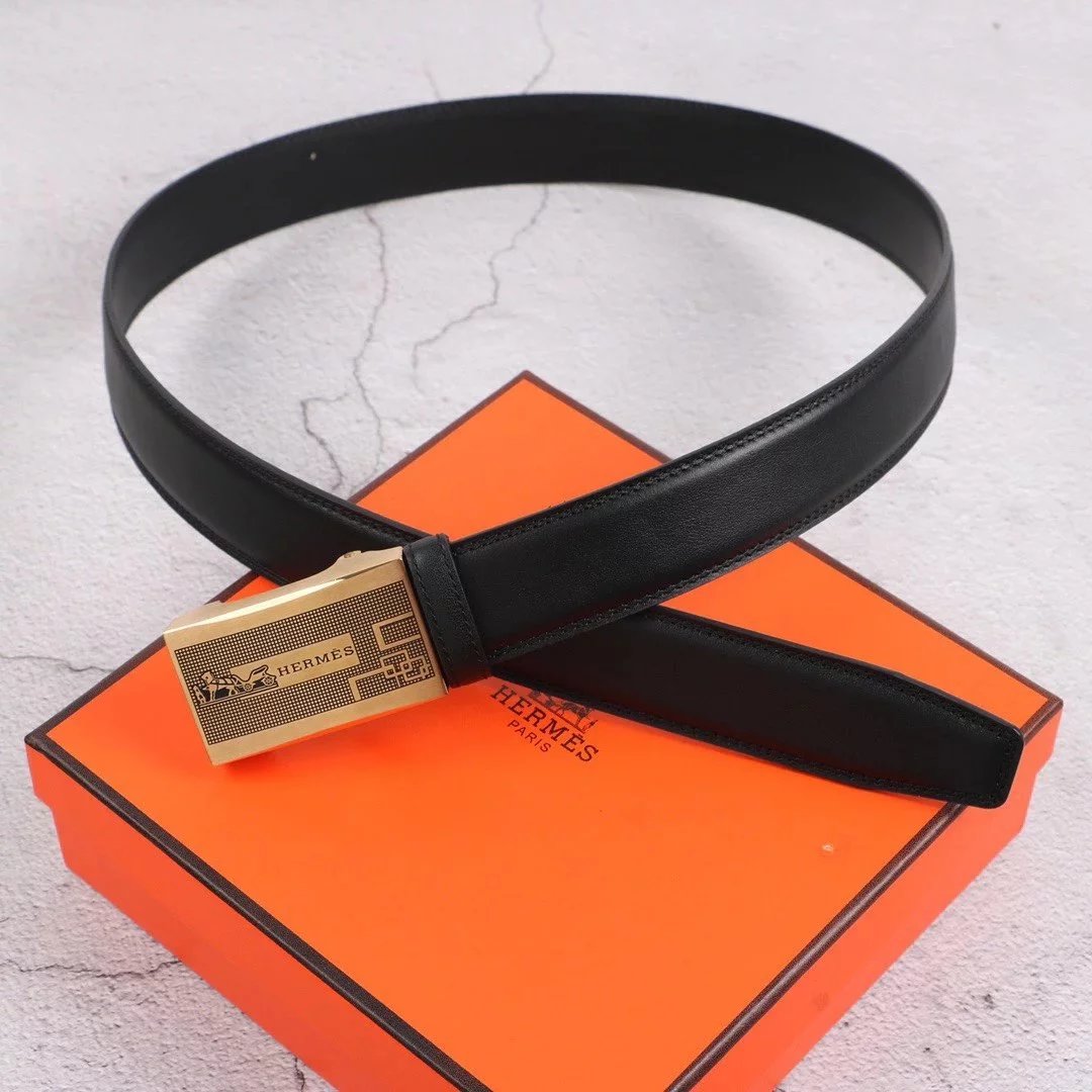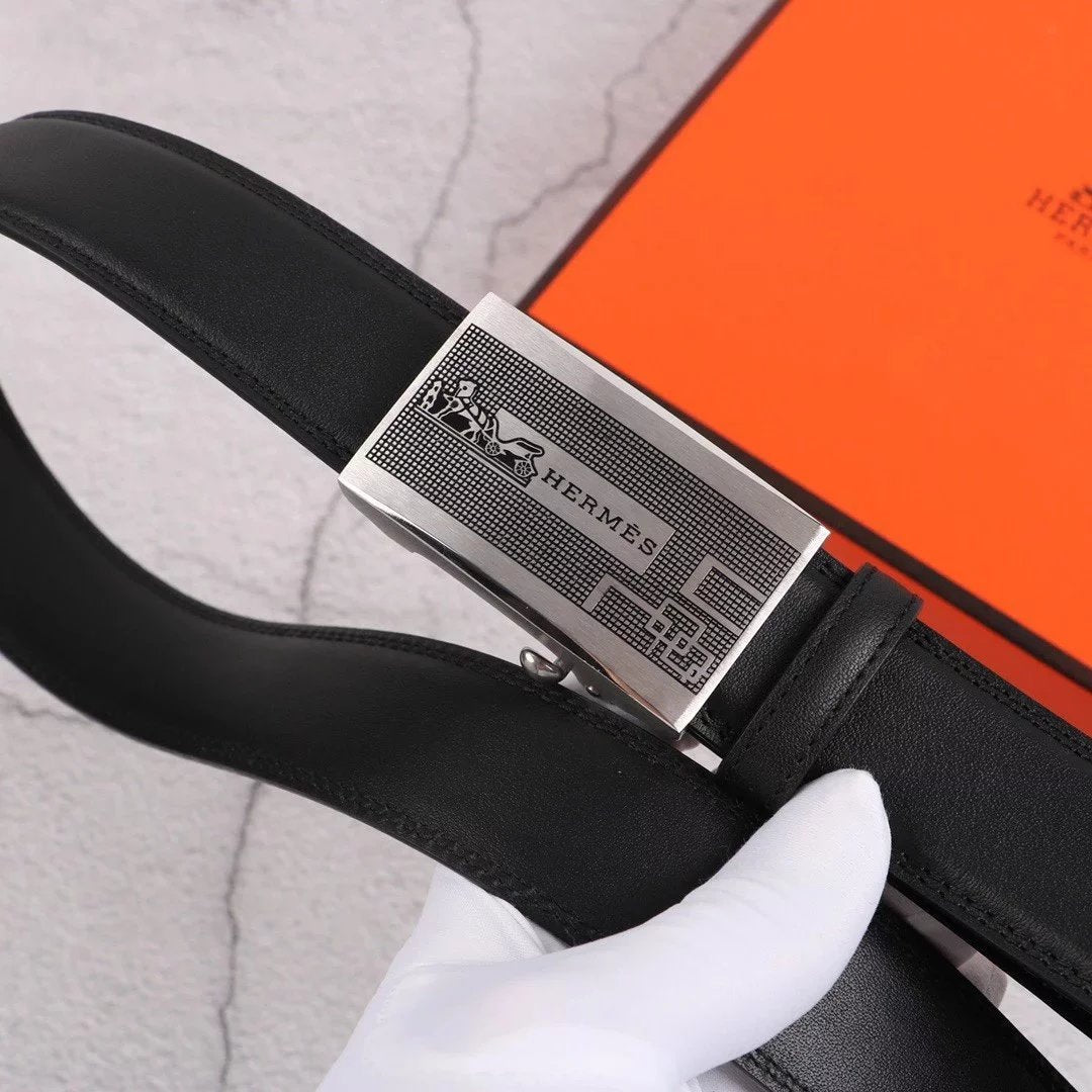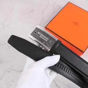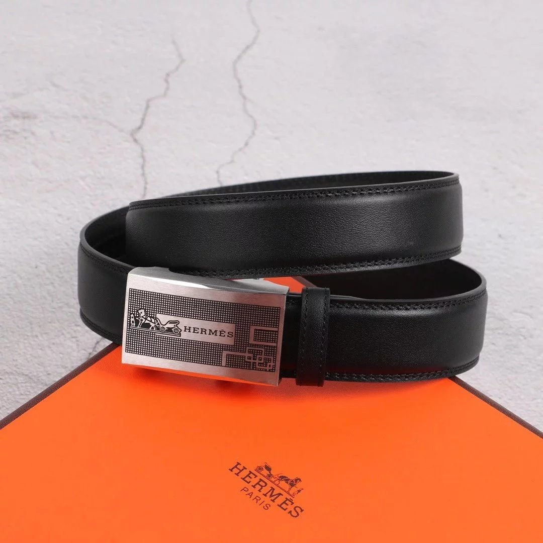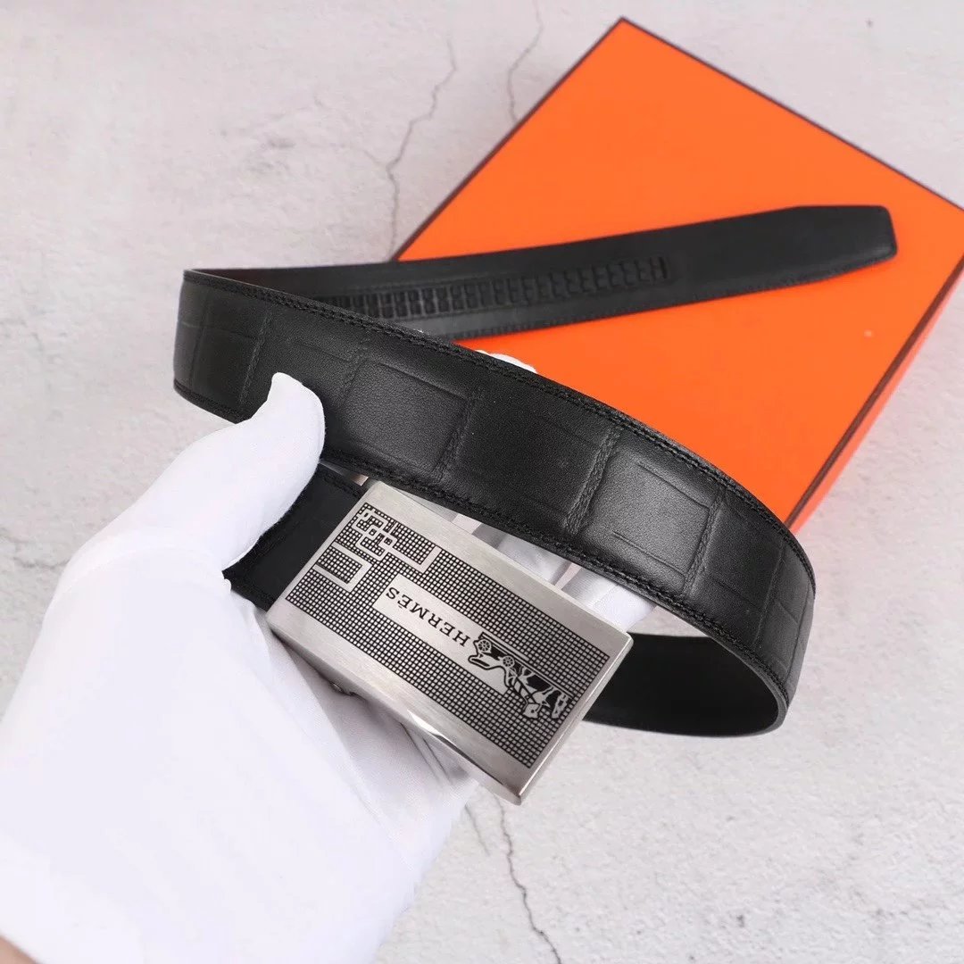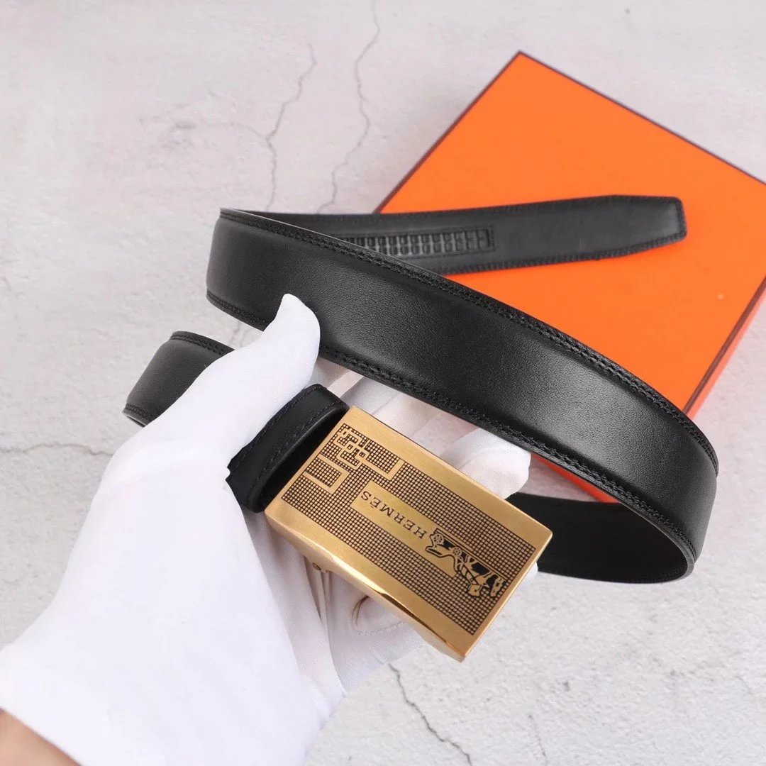 Hermes Belt Top version Exclusive Real Shot High Quality Double-Sided Imported First Layer Cowhide Belt Men's Belt Genuine Leather Stainless Steel Automatic Buckle3.5Centimeter Wide