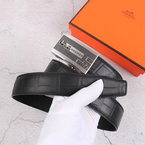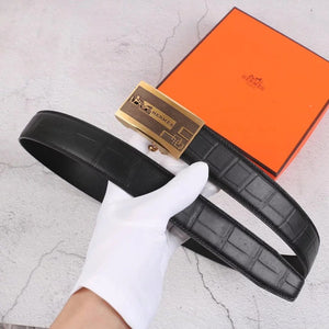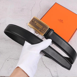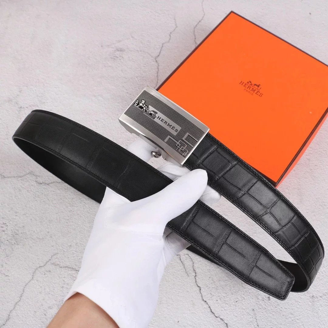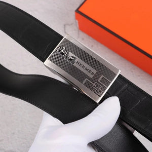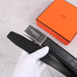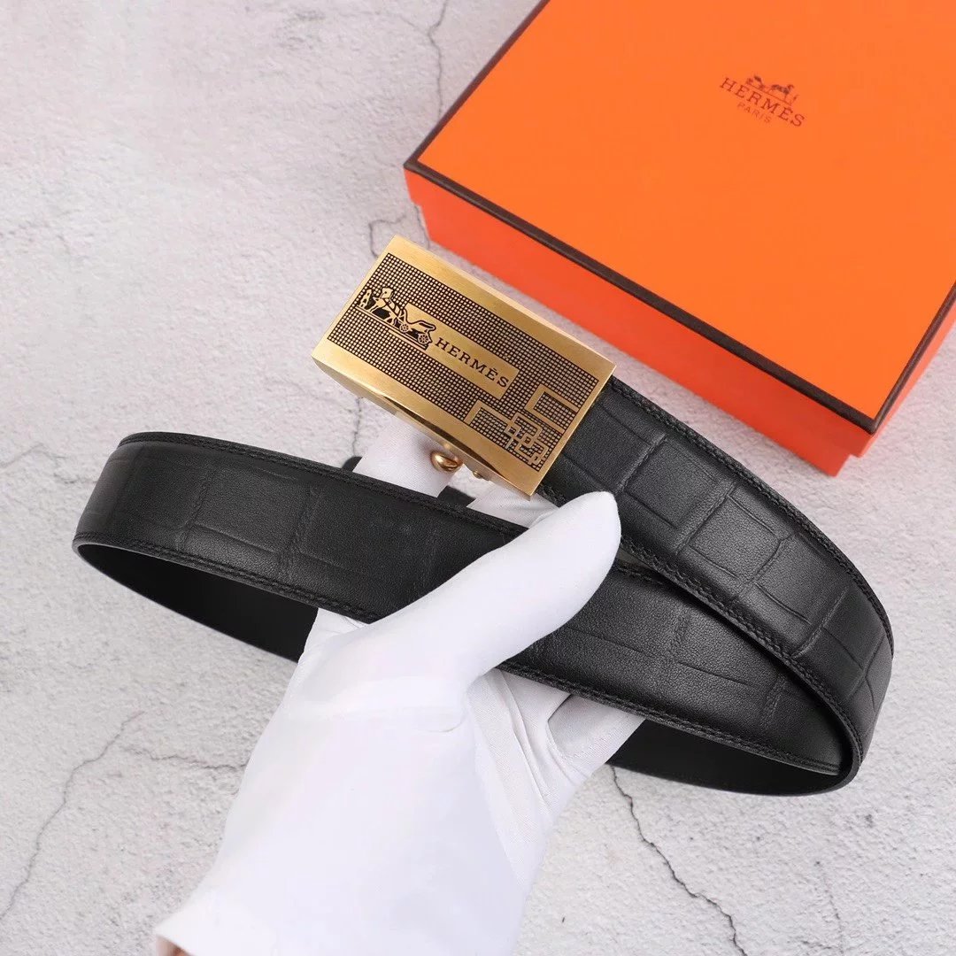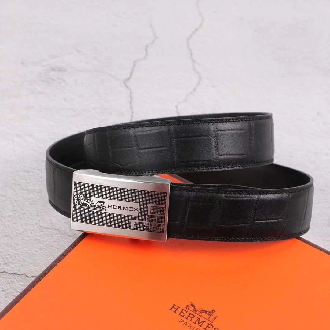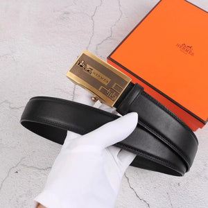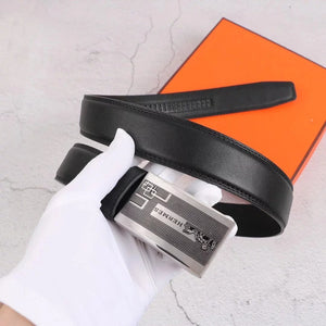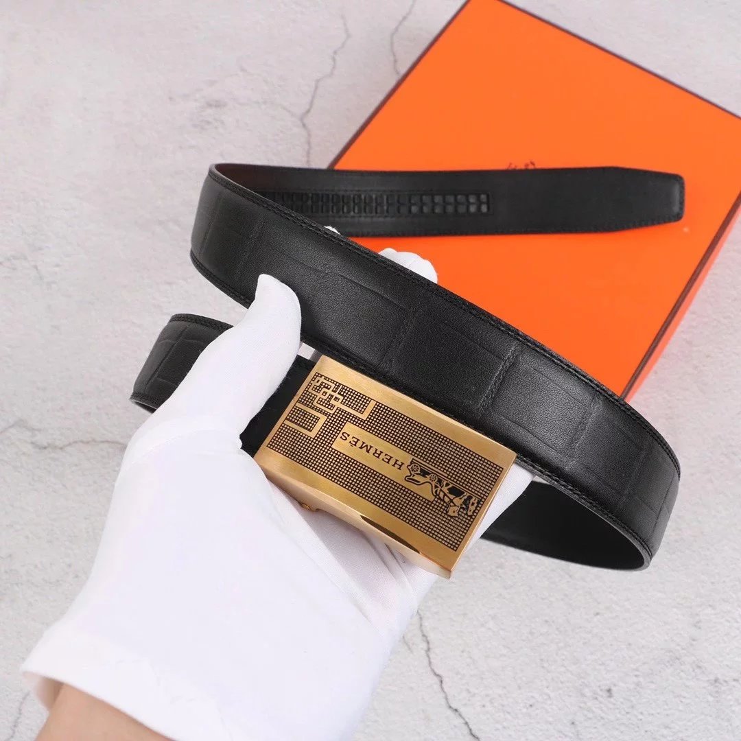 Hermes Belt Top version Exclusive Real Shot High Quality Double-Sided Imported First Layer Cowhide Belt Men's Belt Genuine Leather Stainless Steel Automatic Buckle3.5Centimeter Wide